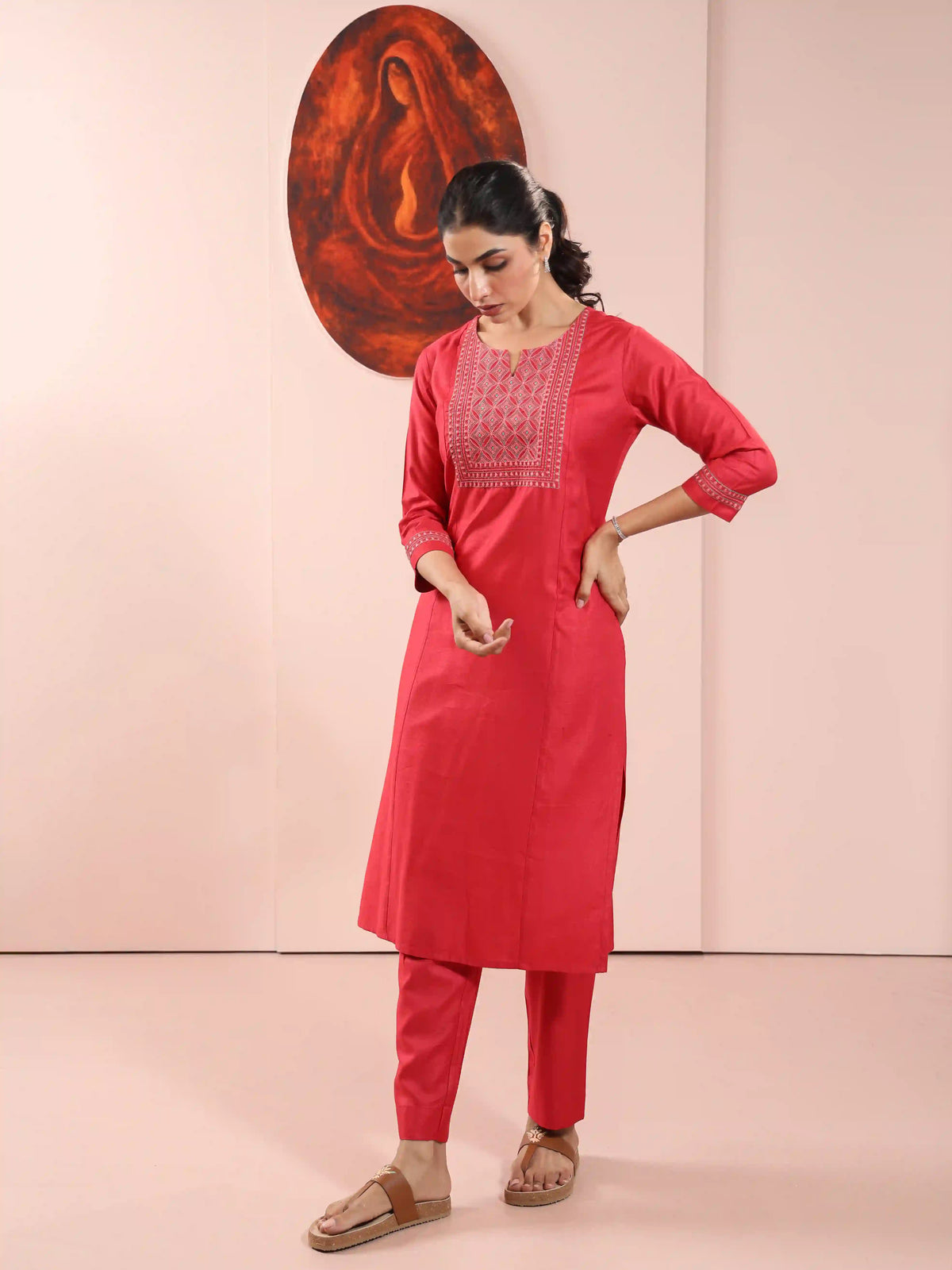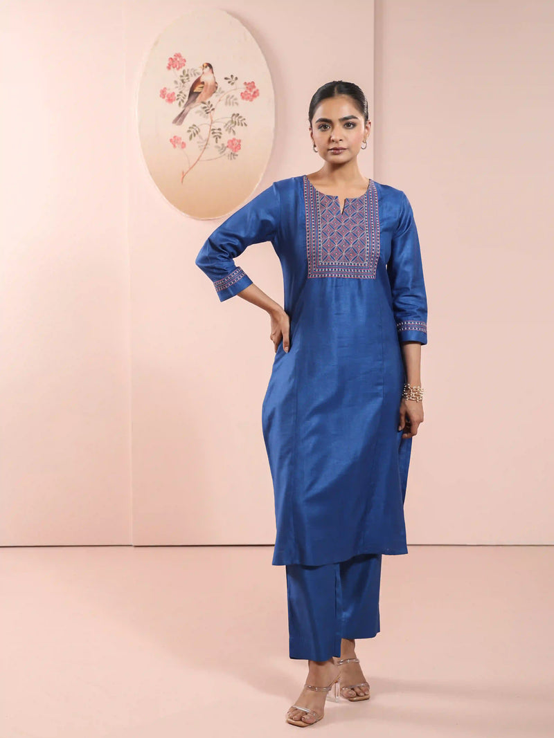 LINEN BLEND CHIKANKARI EMBROIDERY 2PC KURTA SET