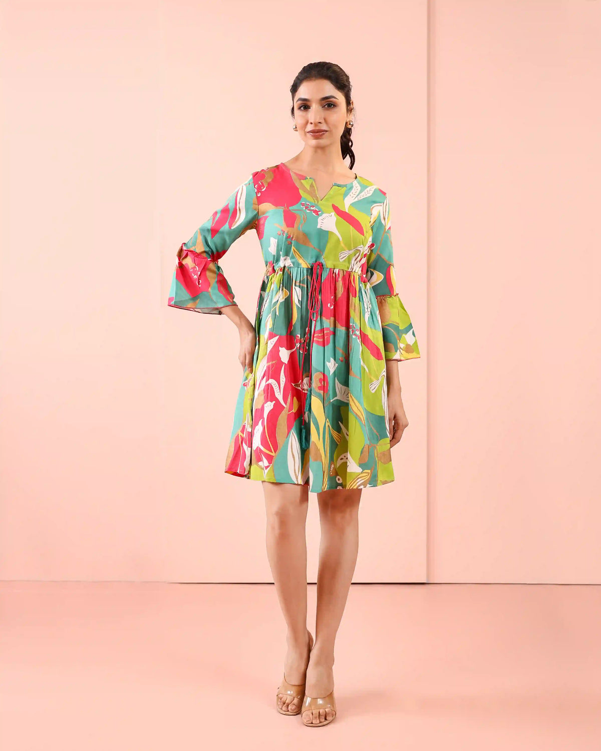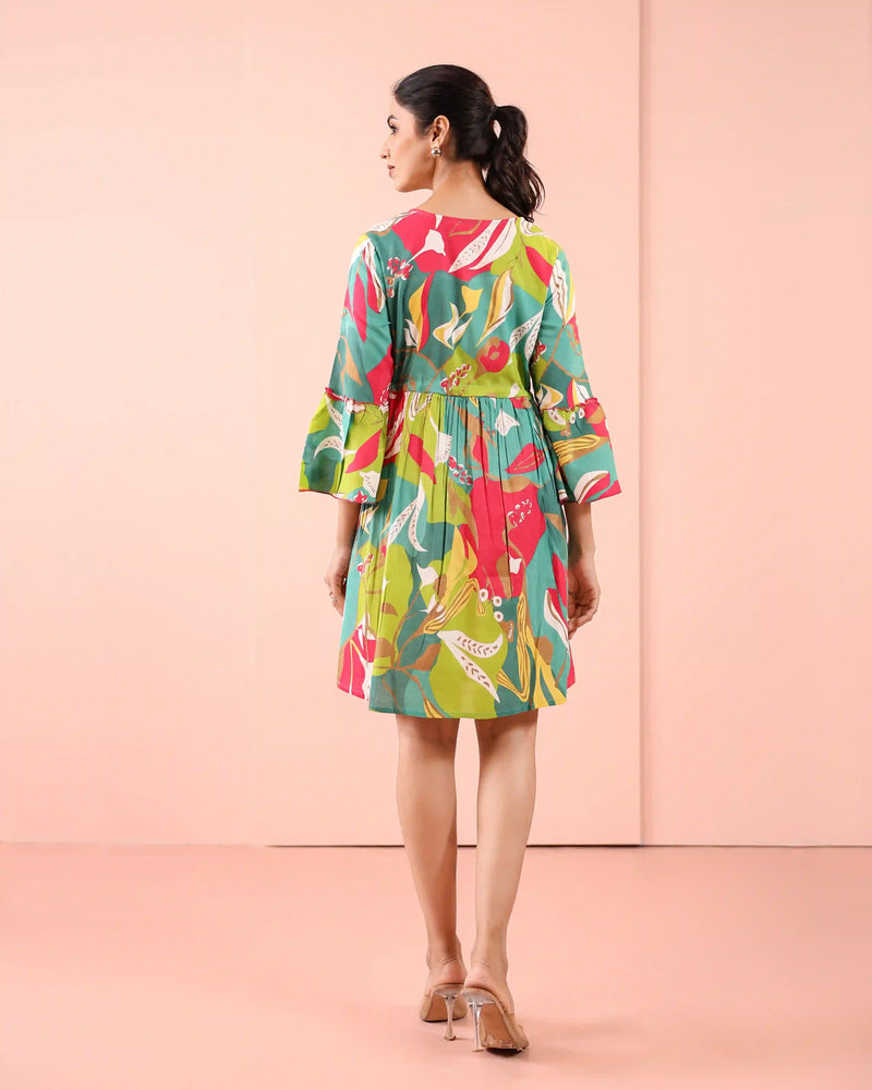 MUL COTTON TROPICAL PRINTED SHORT DRESS