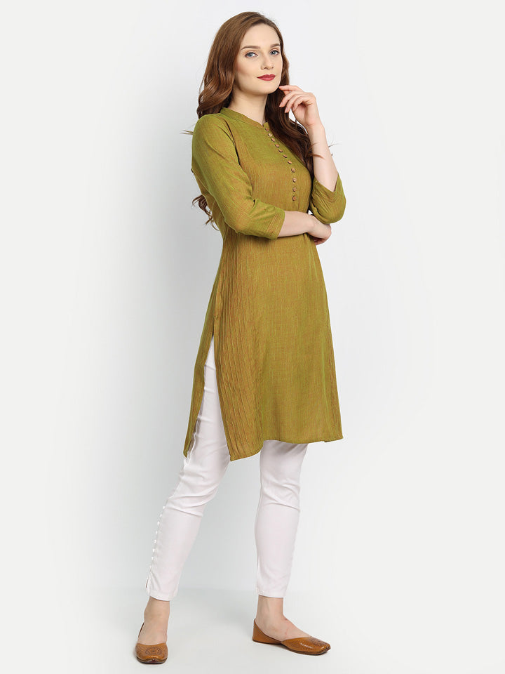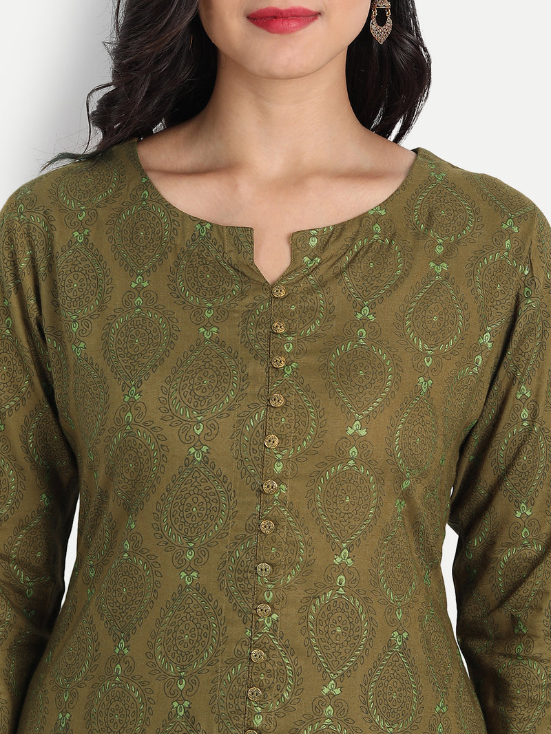 COTTON LINEN PRINTED A-LINE KURTI DETAILED WITH BUTTONS