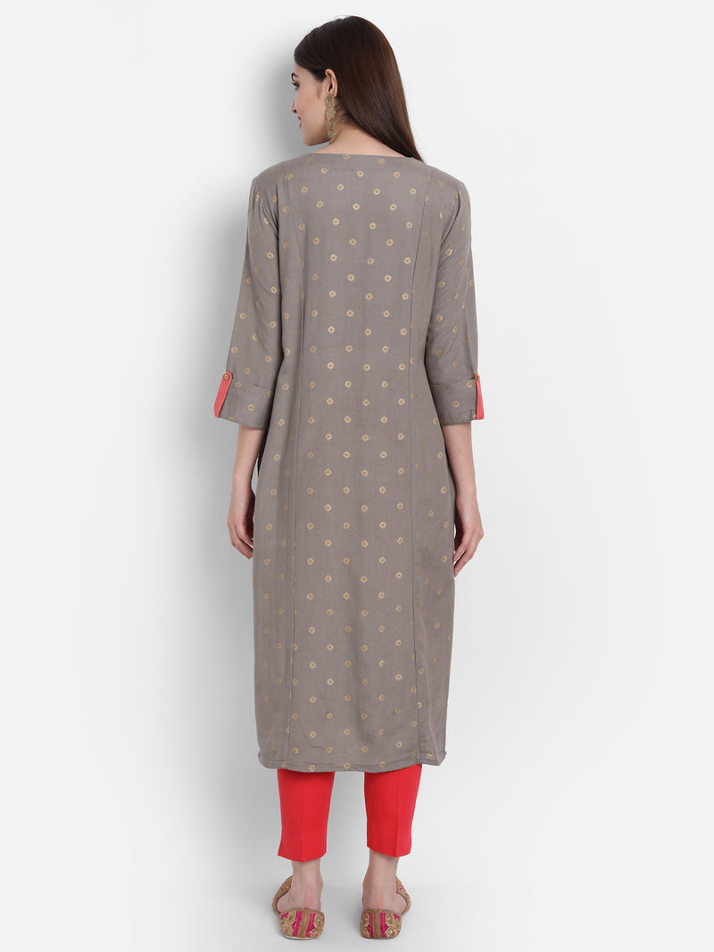 Gold Printed Straight Long Kurti with Zari Sequence Work