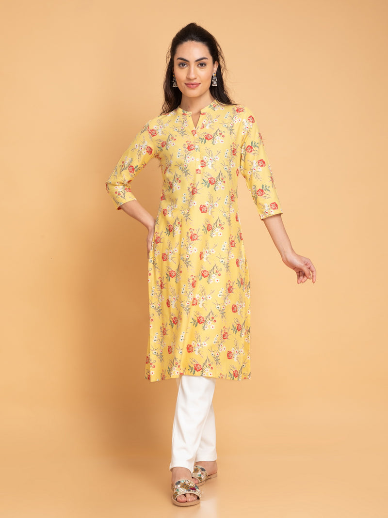 Floral Printed Placket Long Kurta
