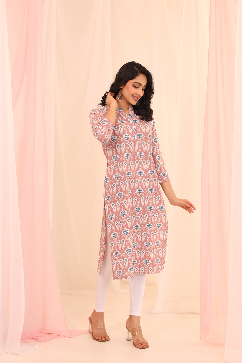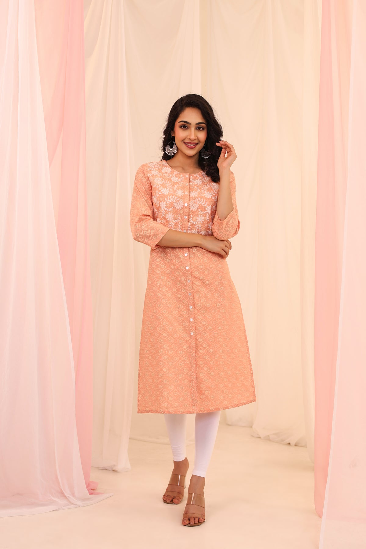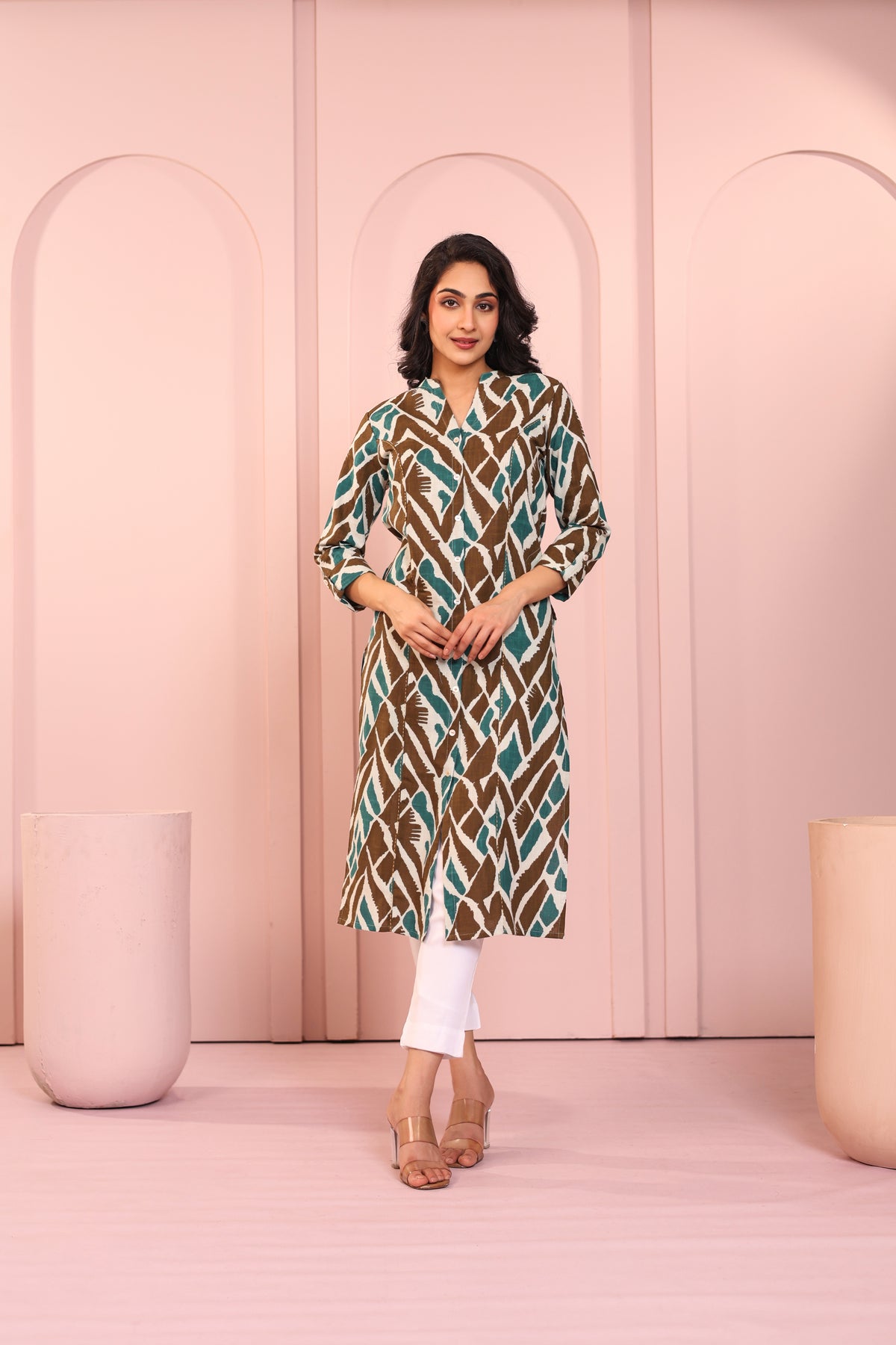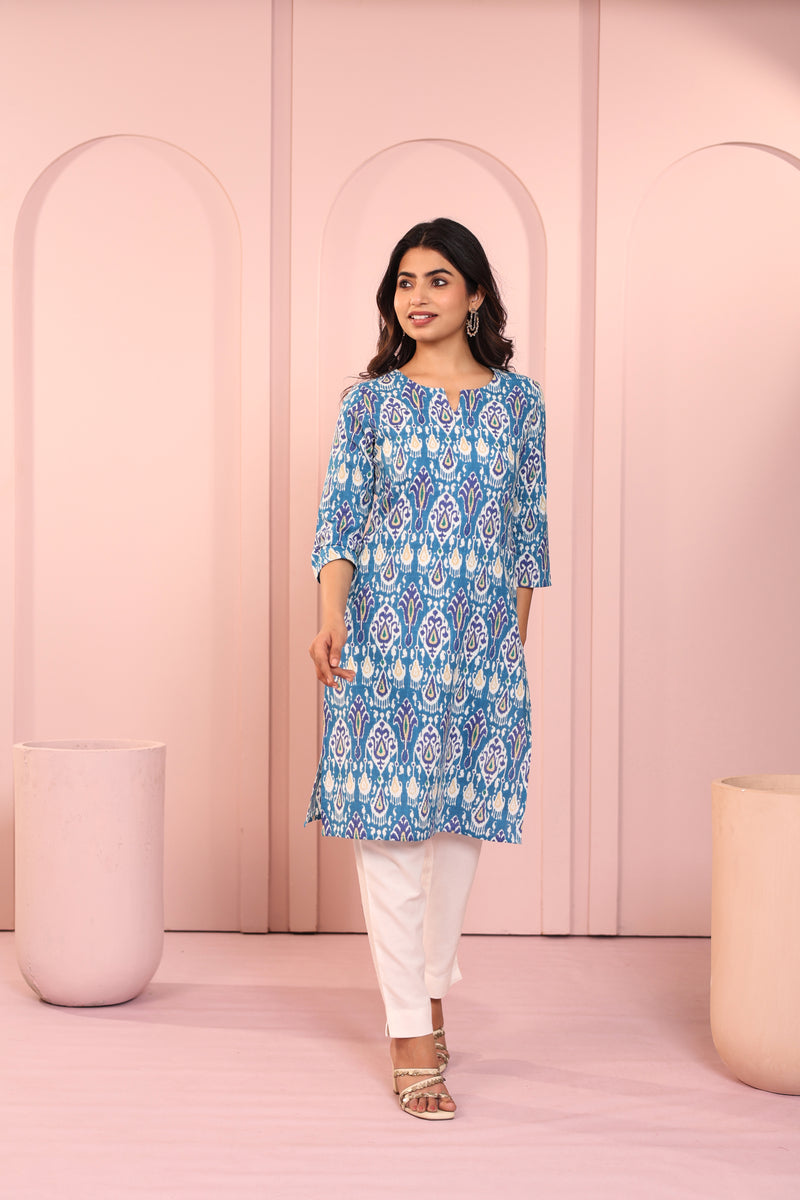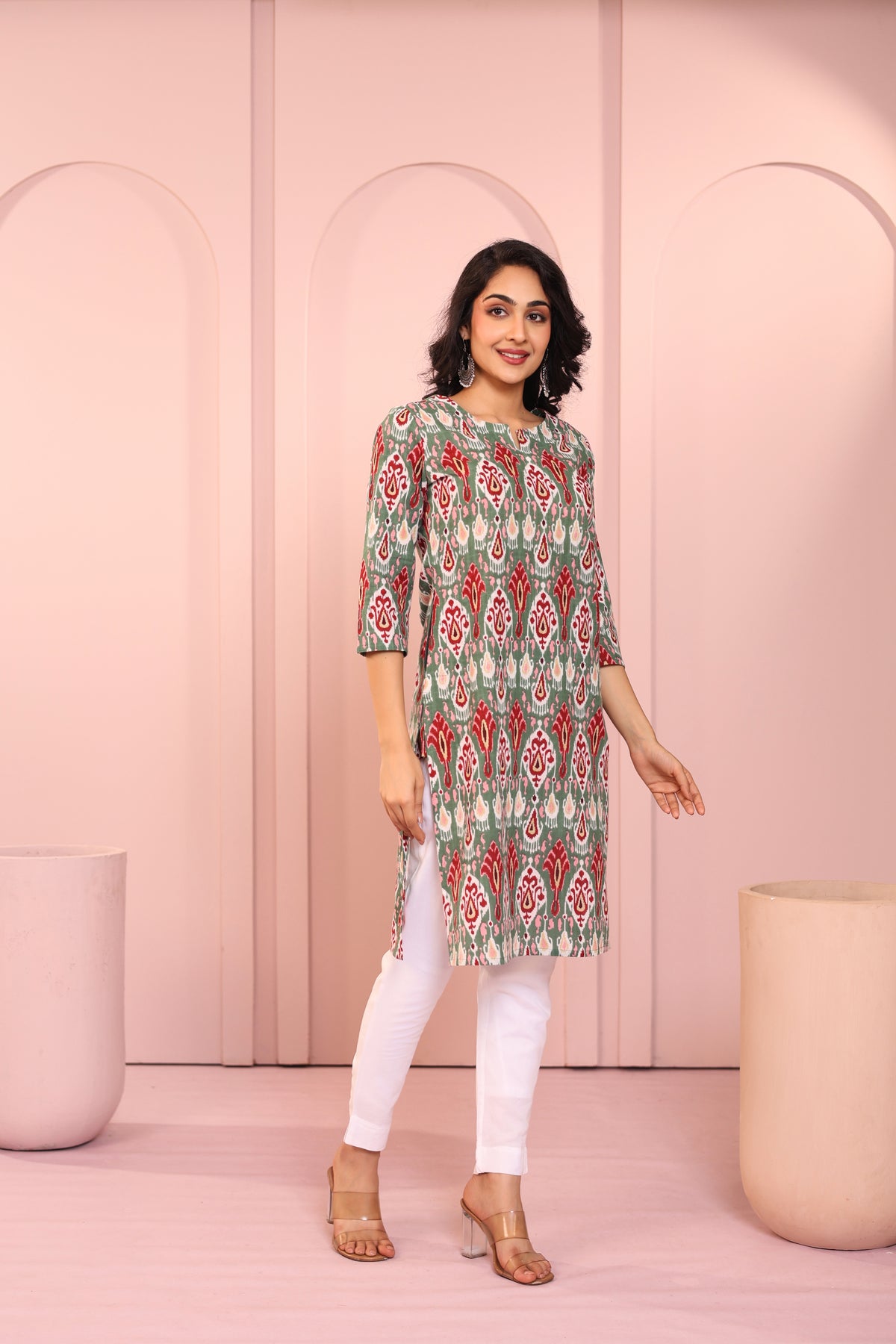 DABU PRINTED BOAT NECK SINGLE KURTI