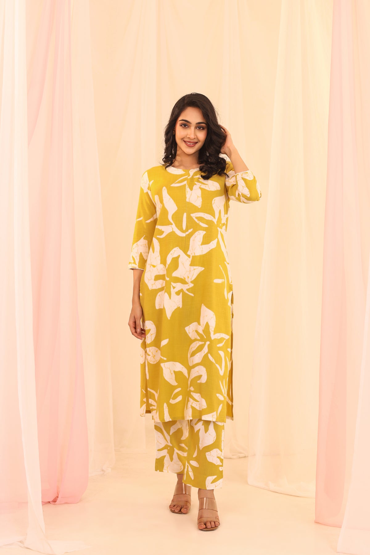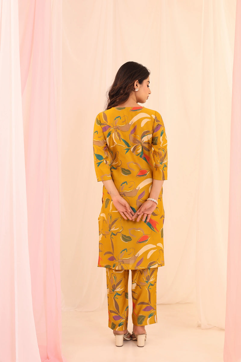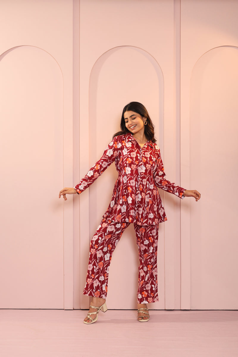 FLORAL PRINTED 2PC CO-ORD SET SET WITH HAND CRAFT DETAILS