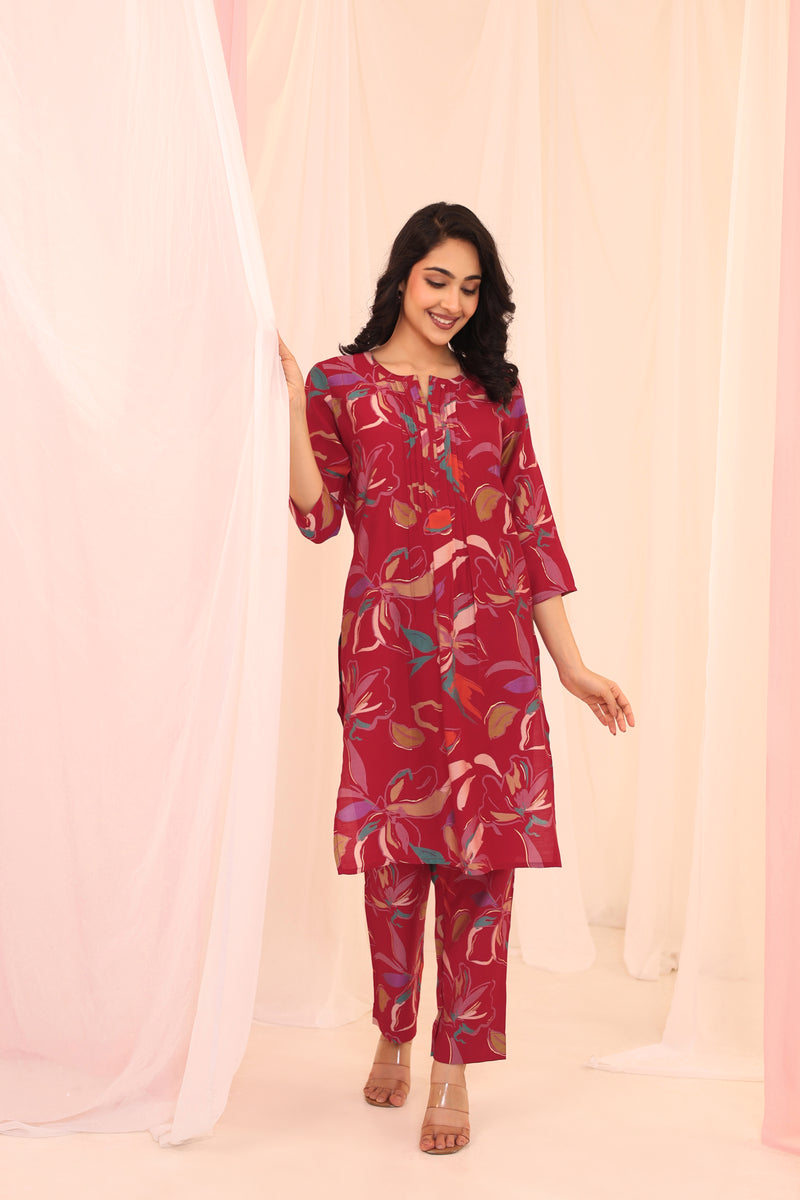 DIGITAL PRINTED CO-ORD SET WITH LACE DETAILS