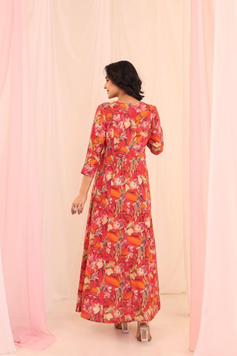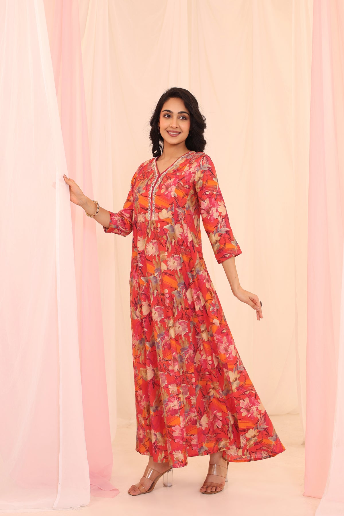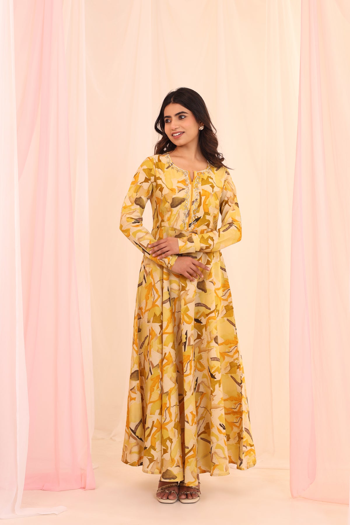 DIGITAL PRINTED KALIDAR DRESS EMBELLISHED WITH ADDA WORK DETAIL