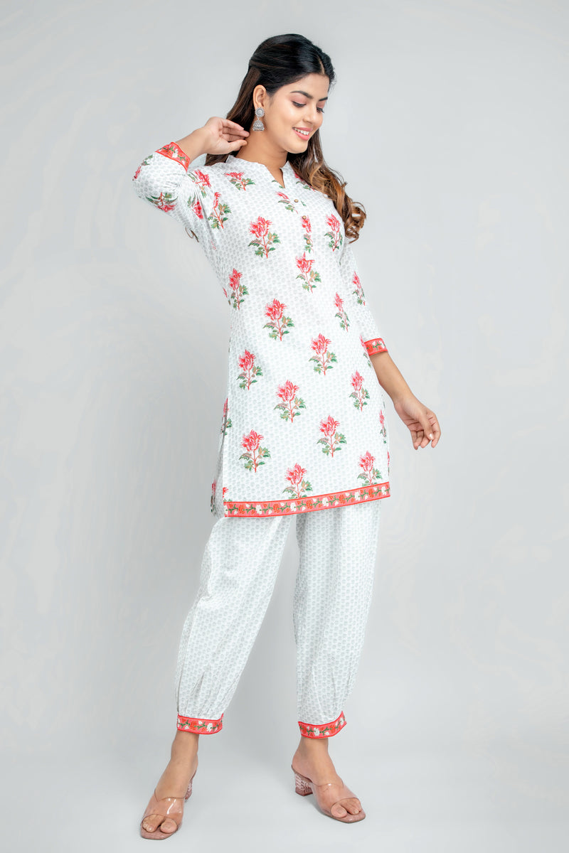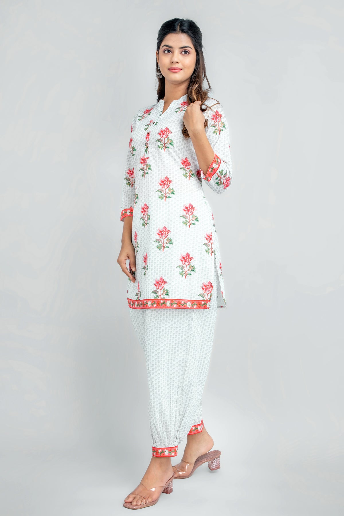 FLORAL PRINTED KURTA WITH LENTARN PANT SET