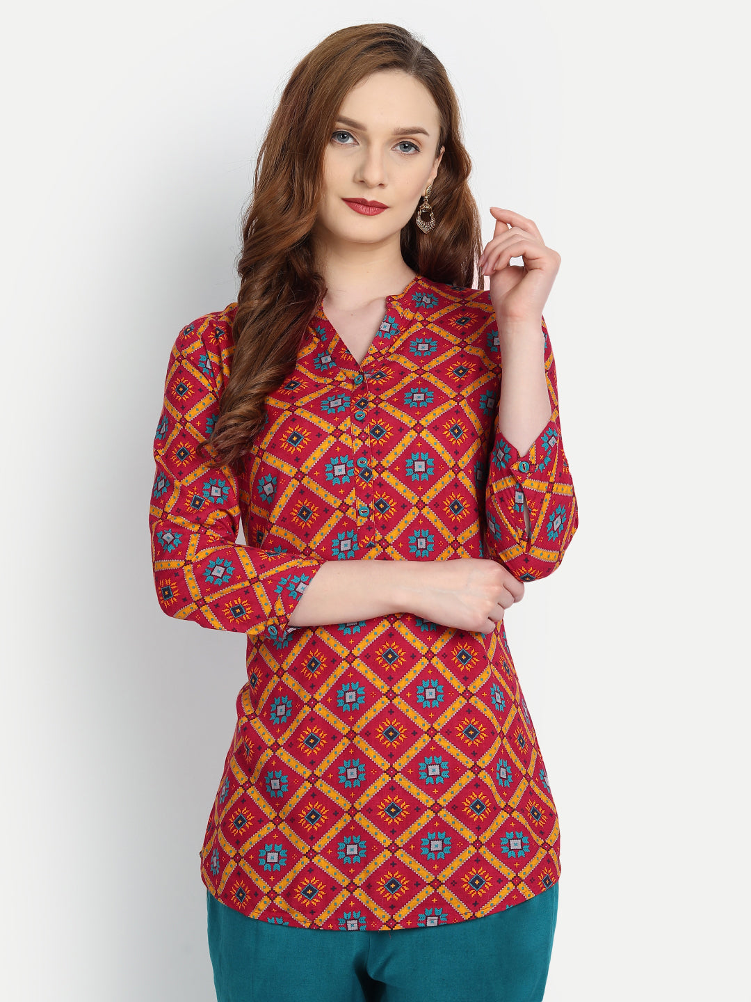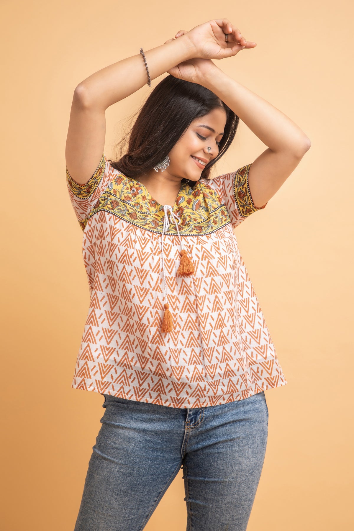 SUTI WOMEN COTTON Chic & Stylish Printed Cotton Top with Dori Latkan