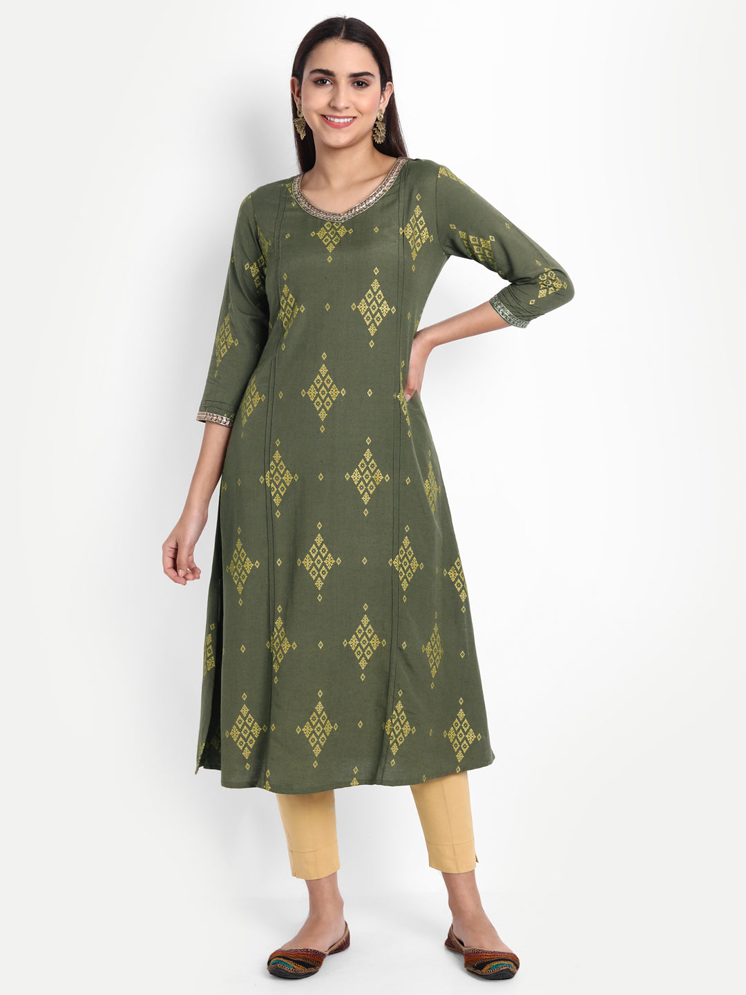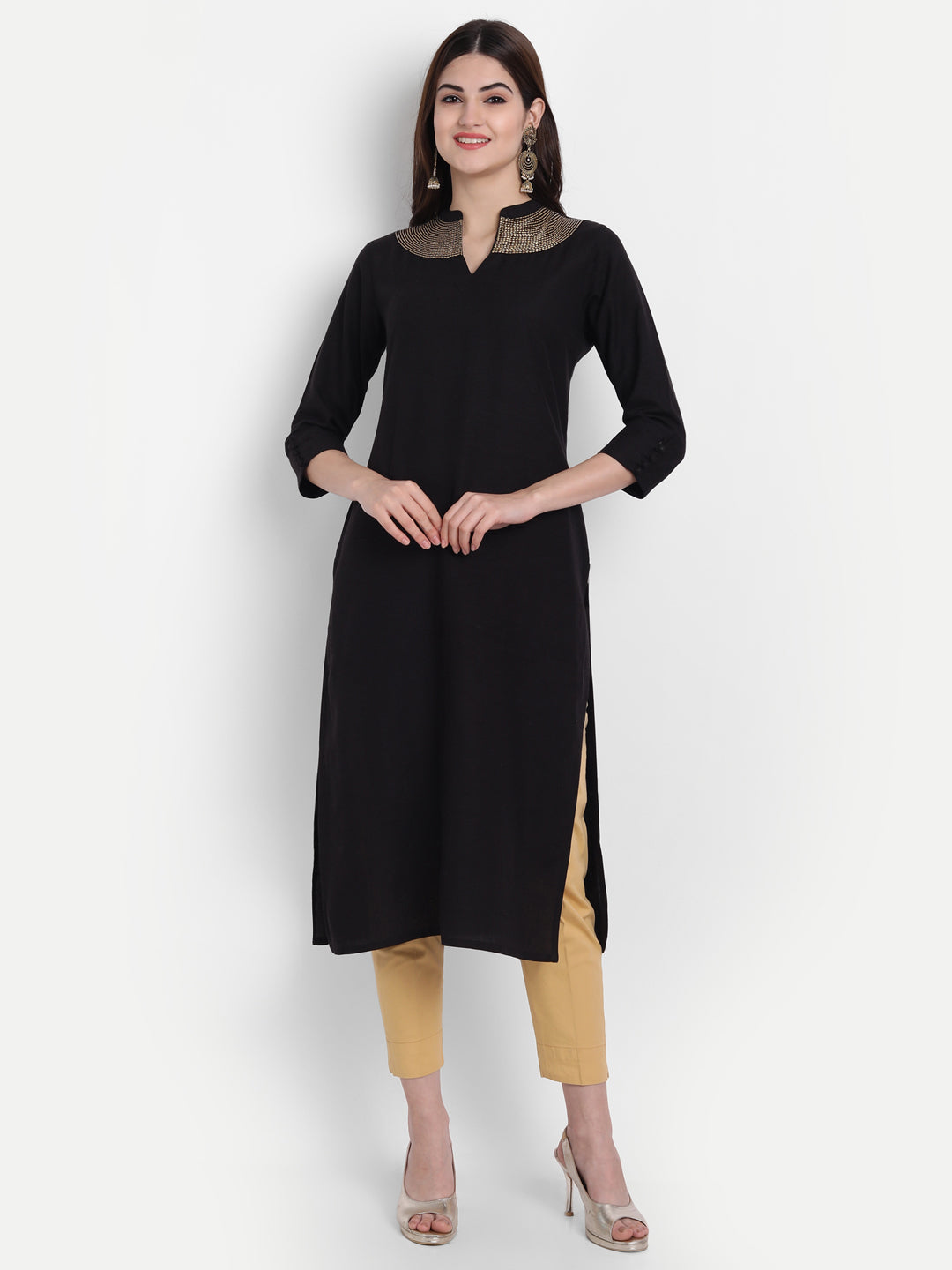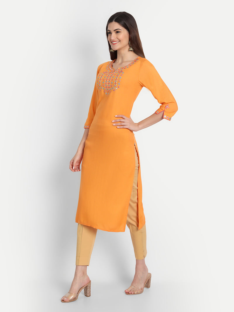 SUTI WOMEN RAYON EMBROIDERED MIRROR WORK STRAIGHT LONG KURTI