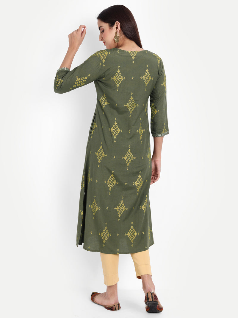 GOLD PRINTED EMBROIDERED A-LINE KURTA