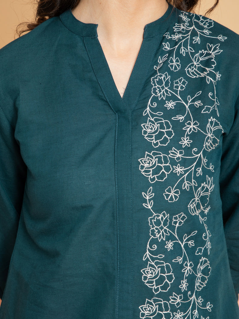 EMBROIDERED NECK, LONG KURTI WITH COLLAR