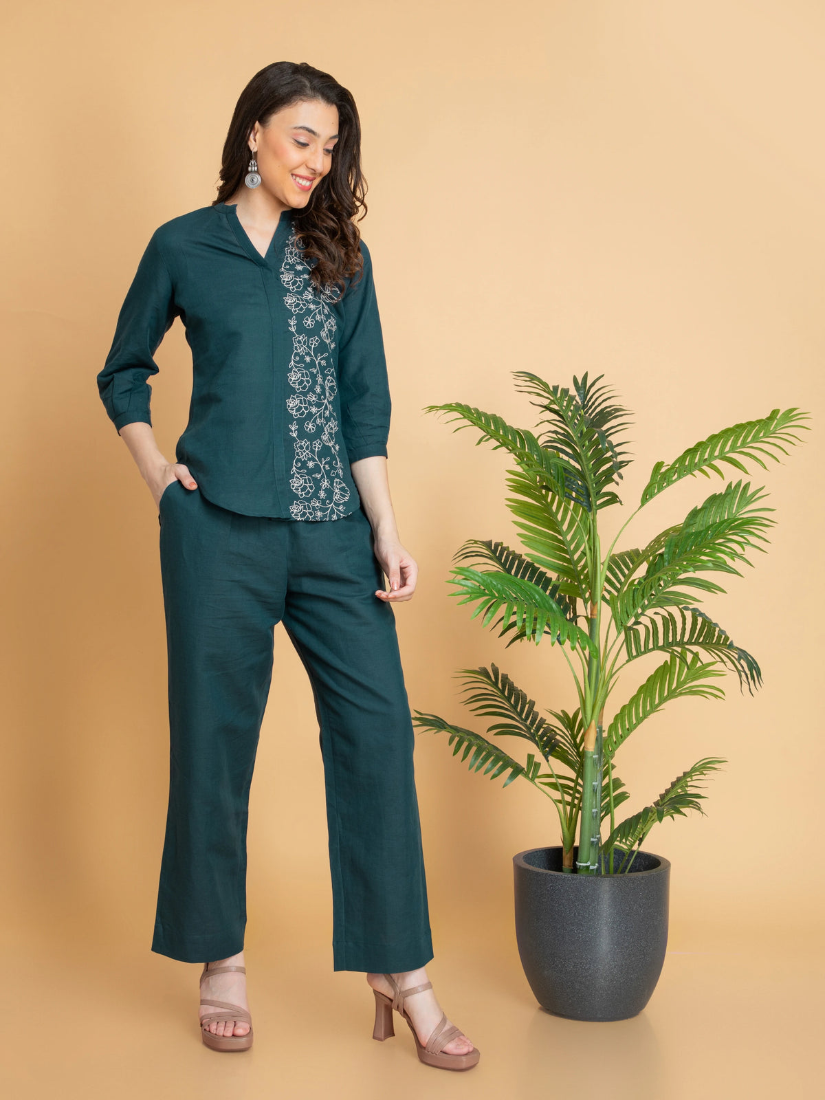 COTTON LINEN PLACEMENT EMBROIDERED FASHION CO-ORD SET