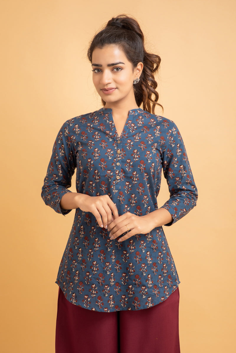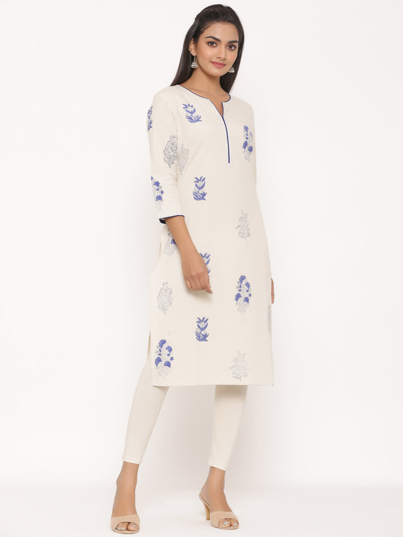 SUTI WOMEN COTTON LINEN HANDBLOCK PRINTED STRAIGHT KURTI