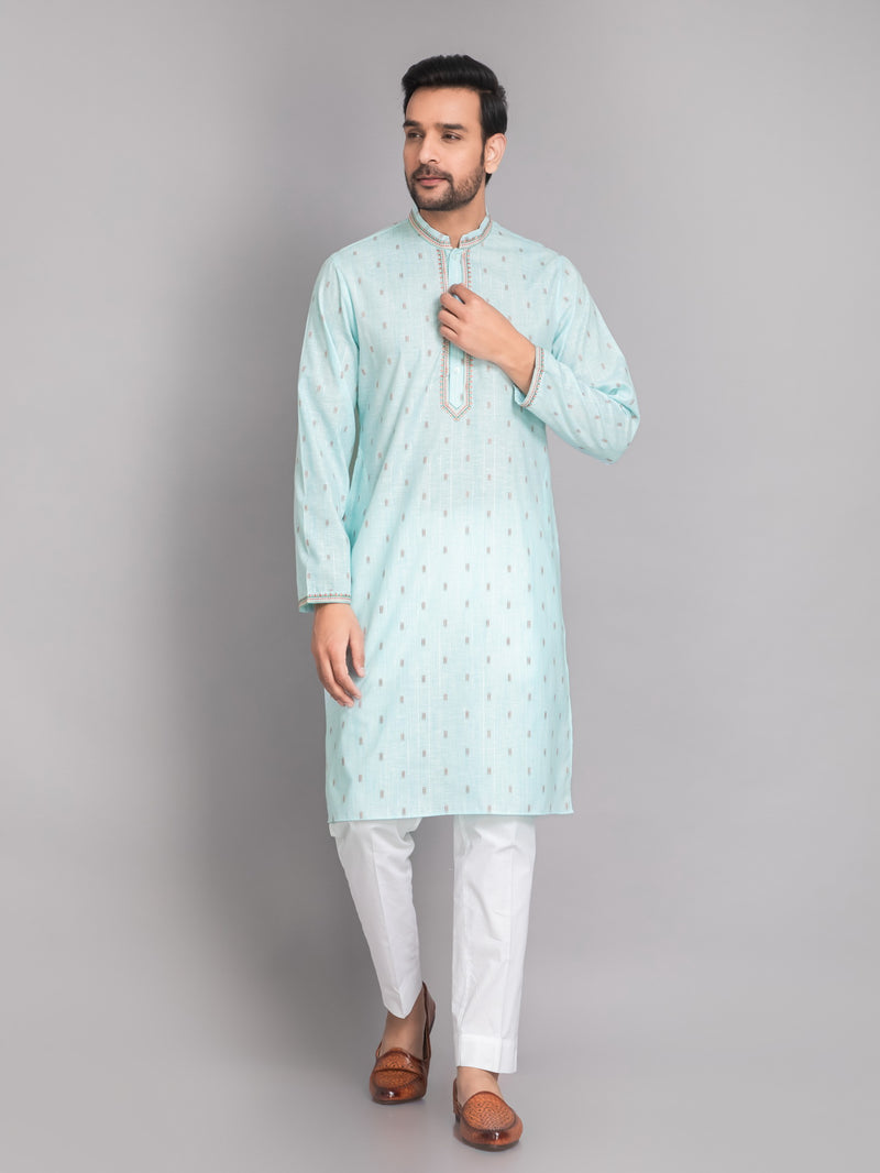 Suti Mens Aqua Blue Cotton Regular Fit Long Kurta