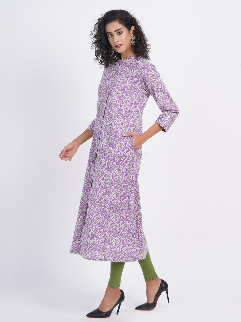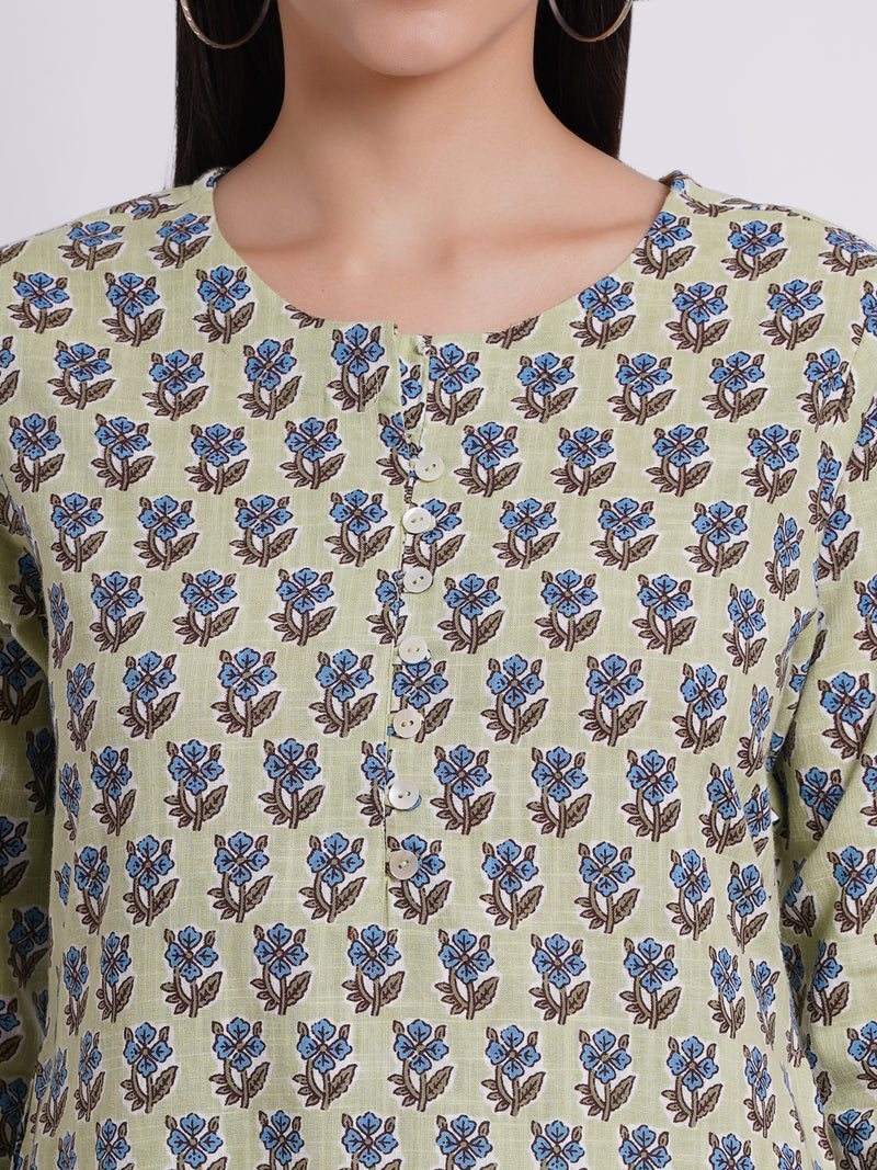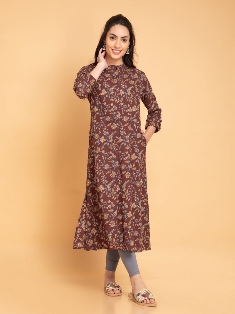 Cotton Slub Kalamkari Print A-Line Long Kurti