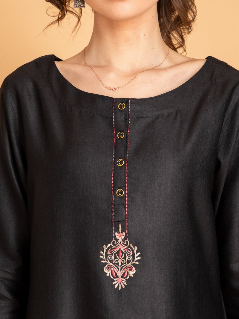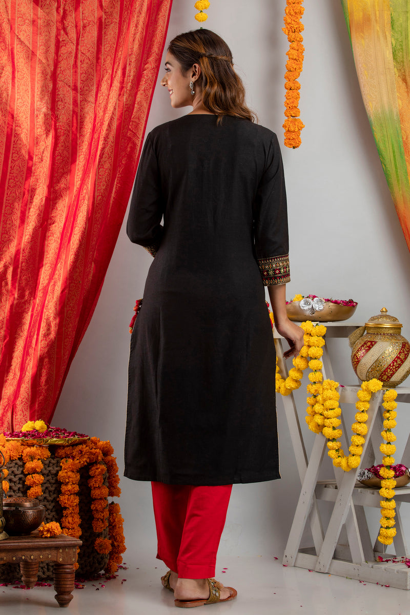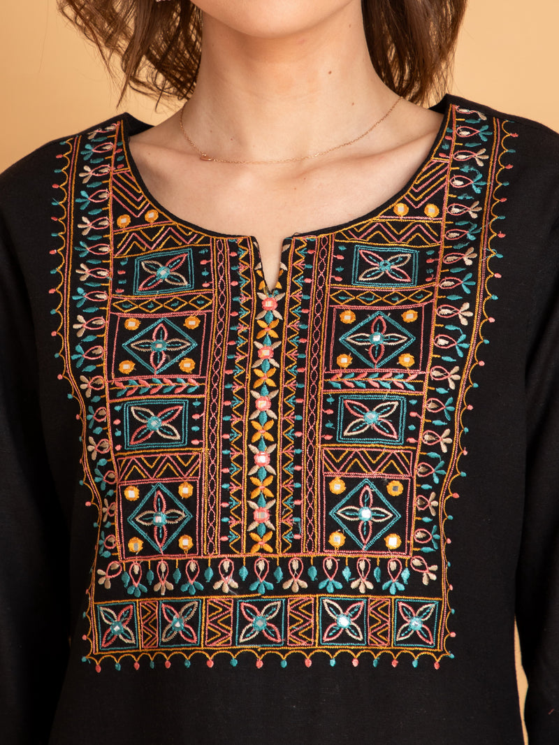 EMBROIDERED FESTIVE WEAR LONG KURTI WITH MIRROR WORK