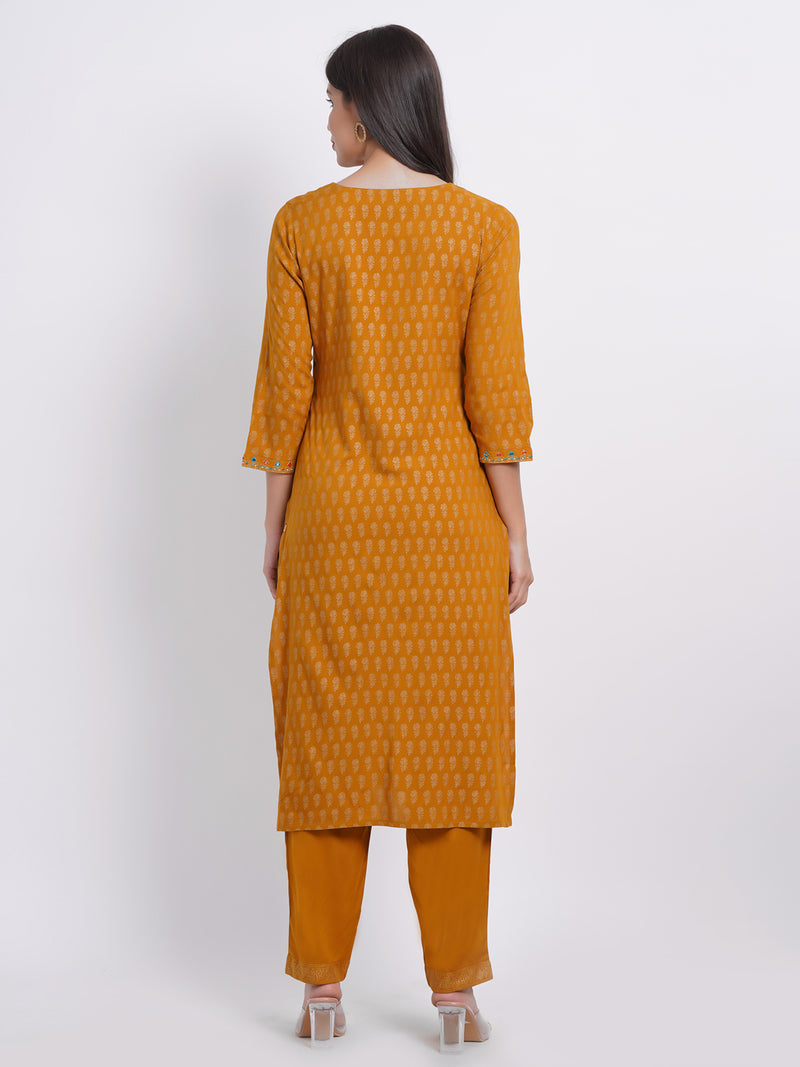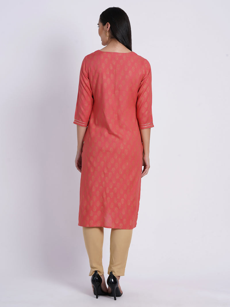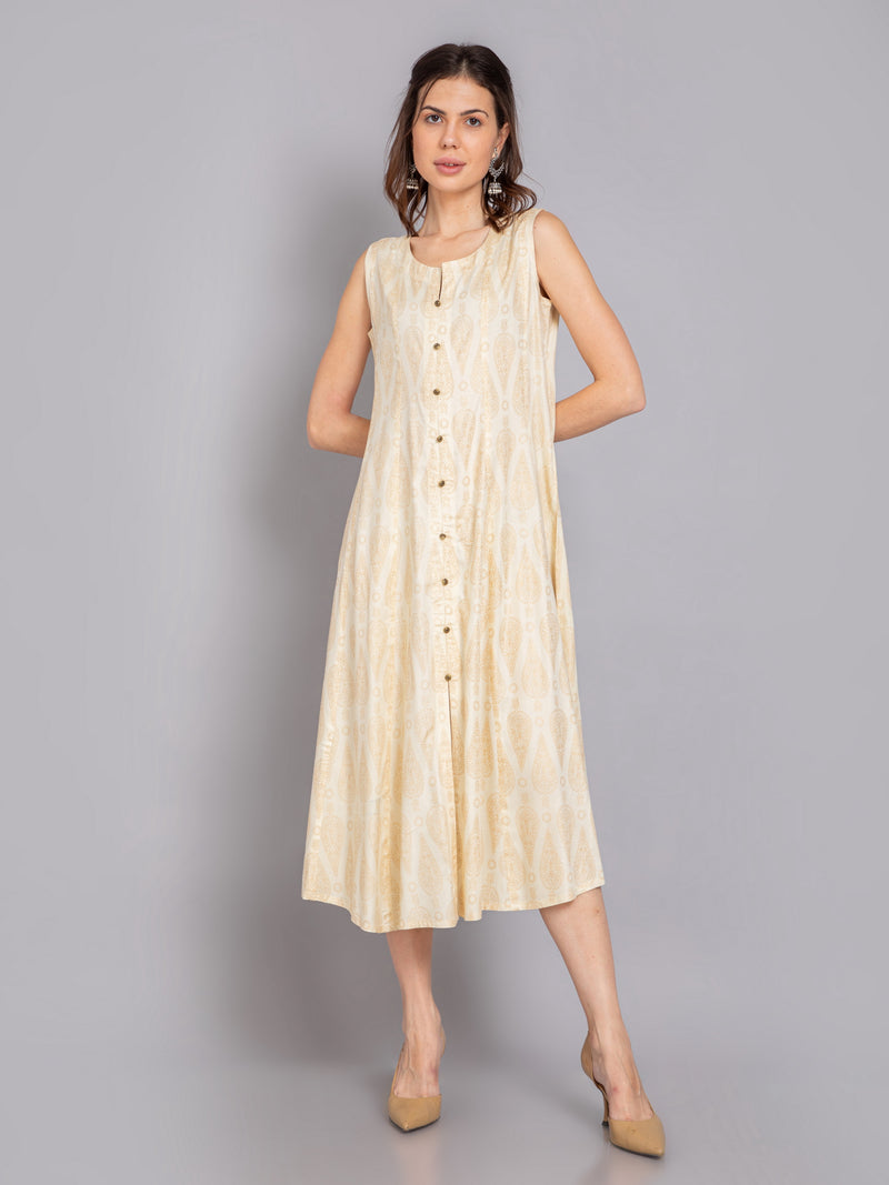 Gold Printed Sleeveless Long Kalidar Kurti with Buttons