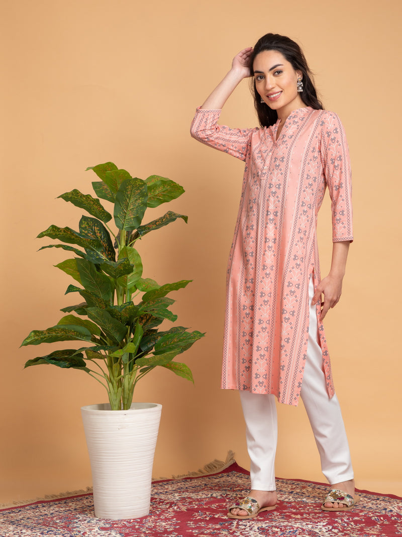 Casual Wear Printed Straight Kurti with Metal Buttons