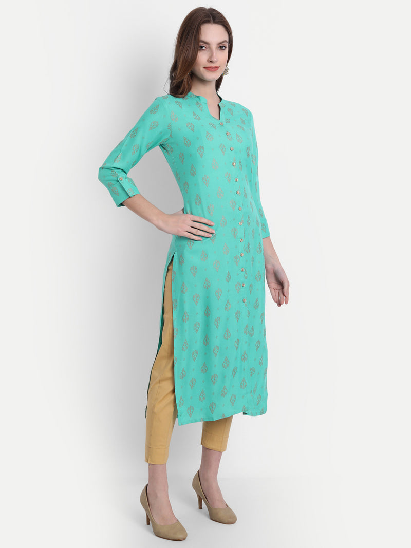 Suti Women Rayon Gold Printed Long Kurti