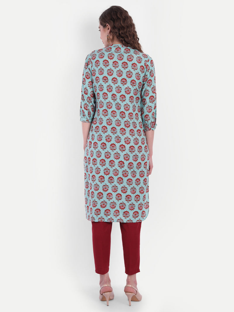 Floral Print Short Kurti with Button Detail