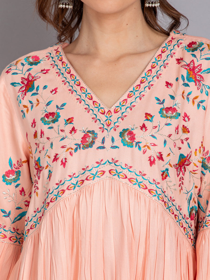 2PC ALIA CUT SET EMBELLISHED WITH COLORFUL EMBROIDERY.