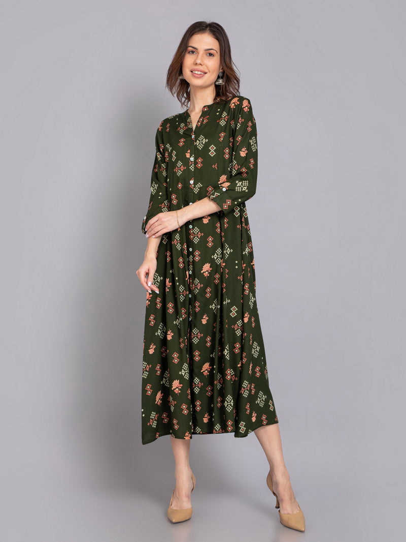 Suti Women Rayon Printed Long Flared Dress
