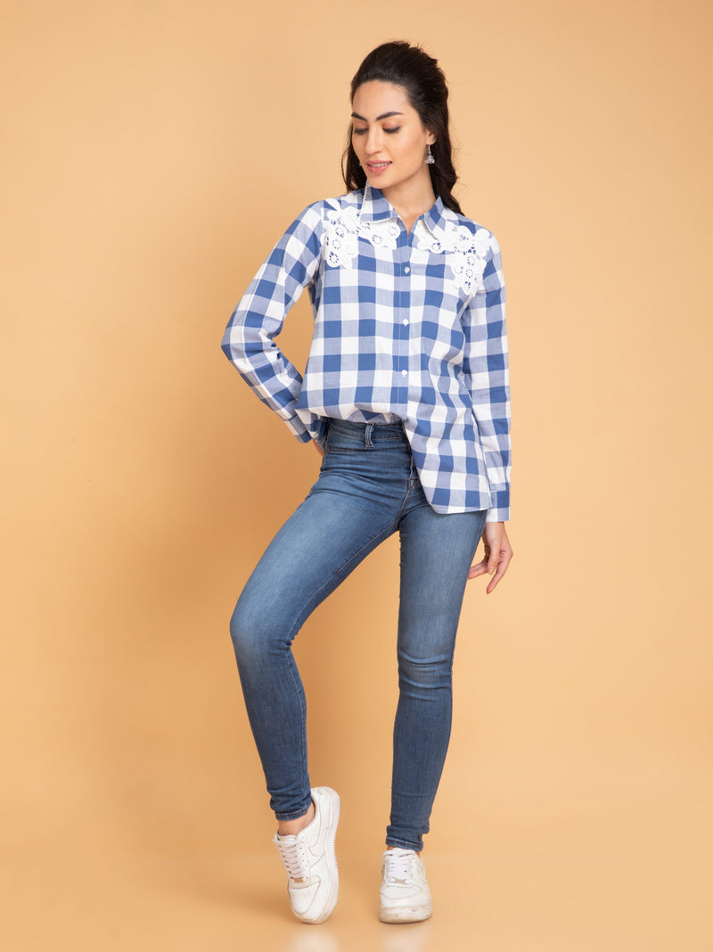 Yarn Dyed Shirt with Lace & Crochet Details