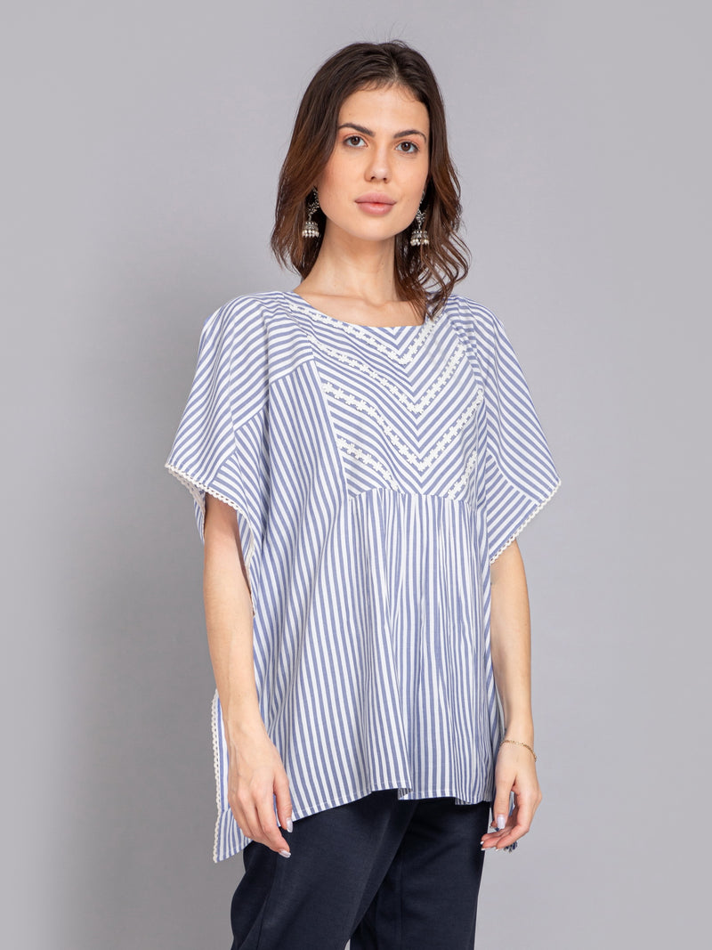 Yarn Dyed Stripe Kaftan Top with Lace Detail