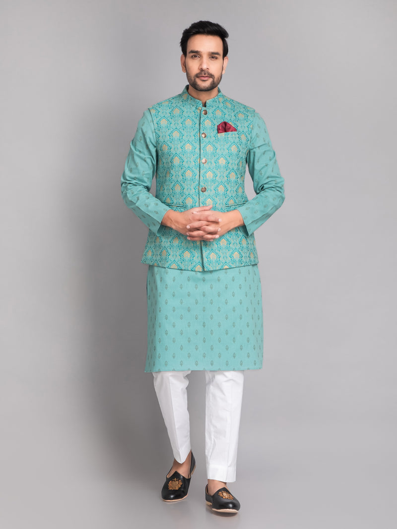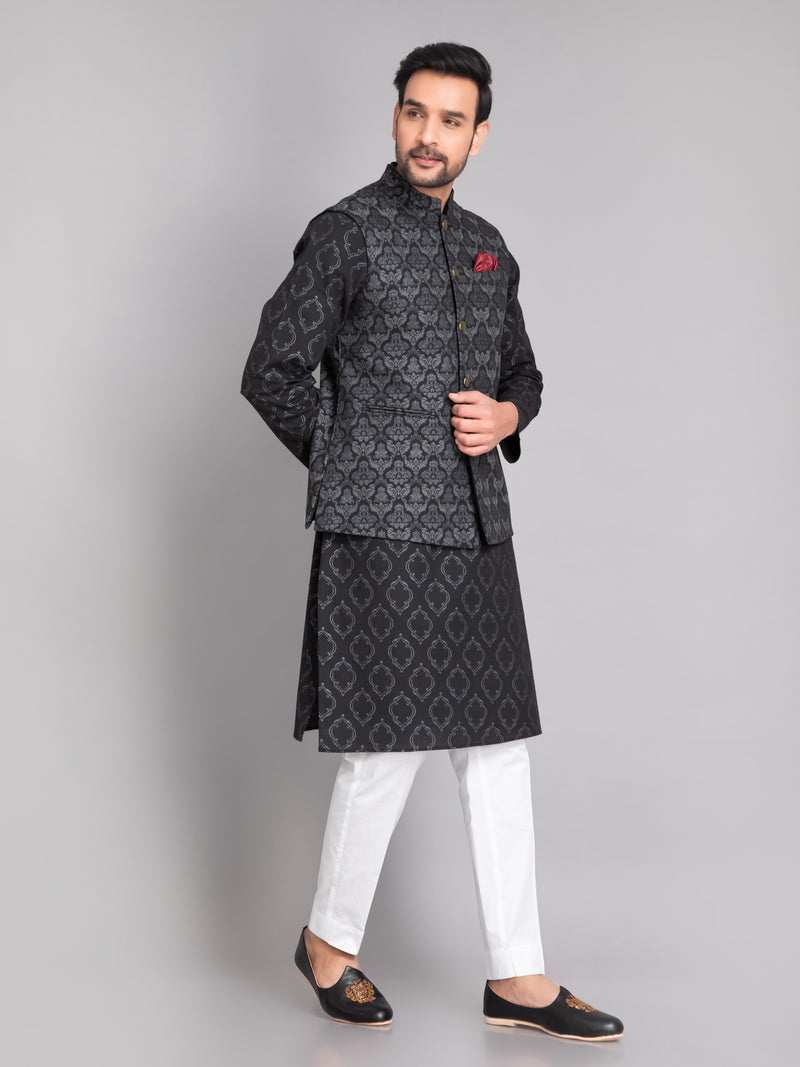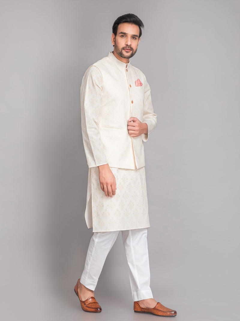 SUTI MEN'S KHADI LINEN 3D EMBOSE GLOSE PRINTED NEHRU JACKET