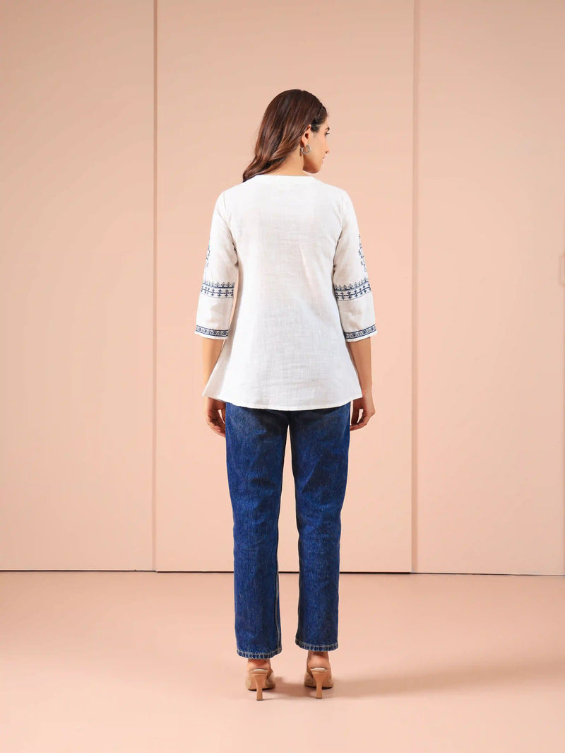 Women White embroidered-short-top-with-dori-tessal