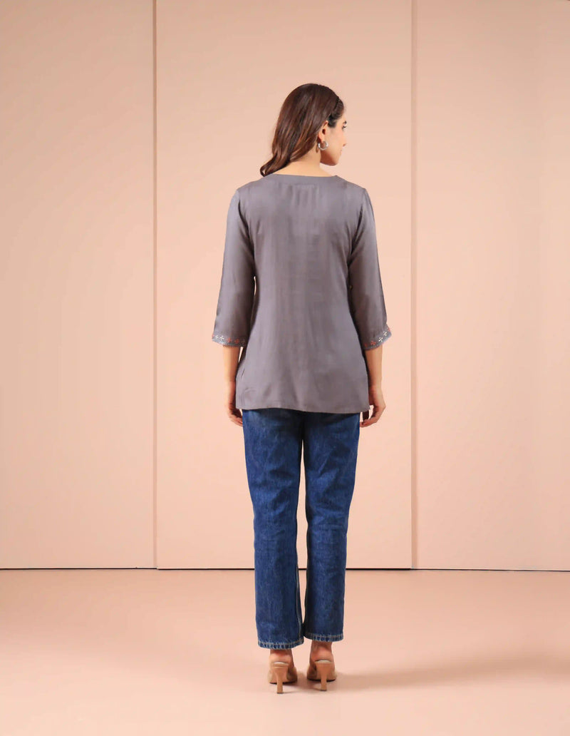 Women Steel Grey embroidered-short-top
