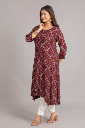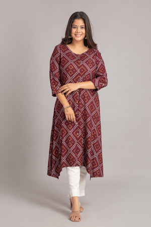 Bandhej Printed A-Line Long Kurti