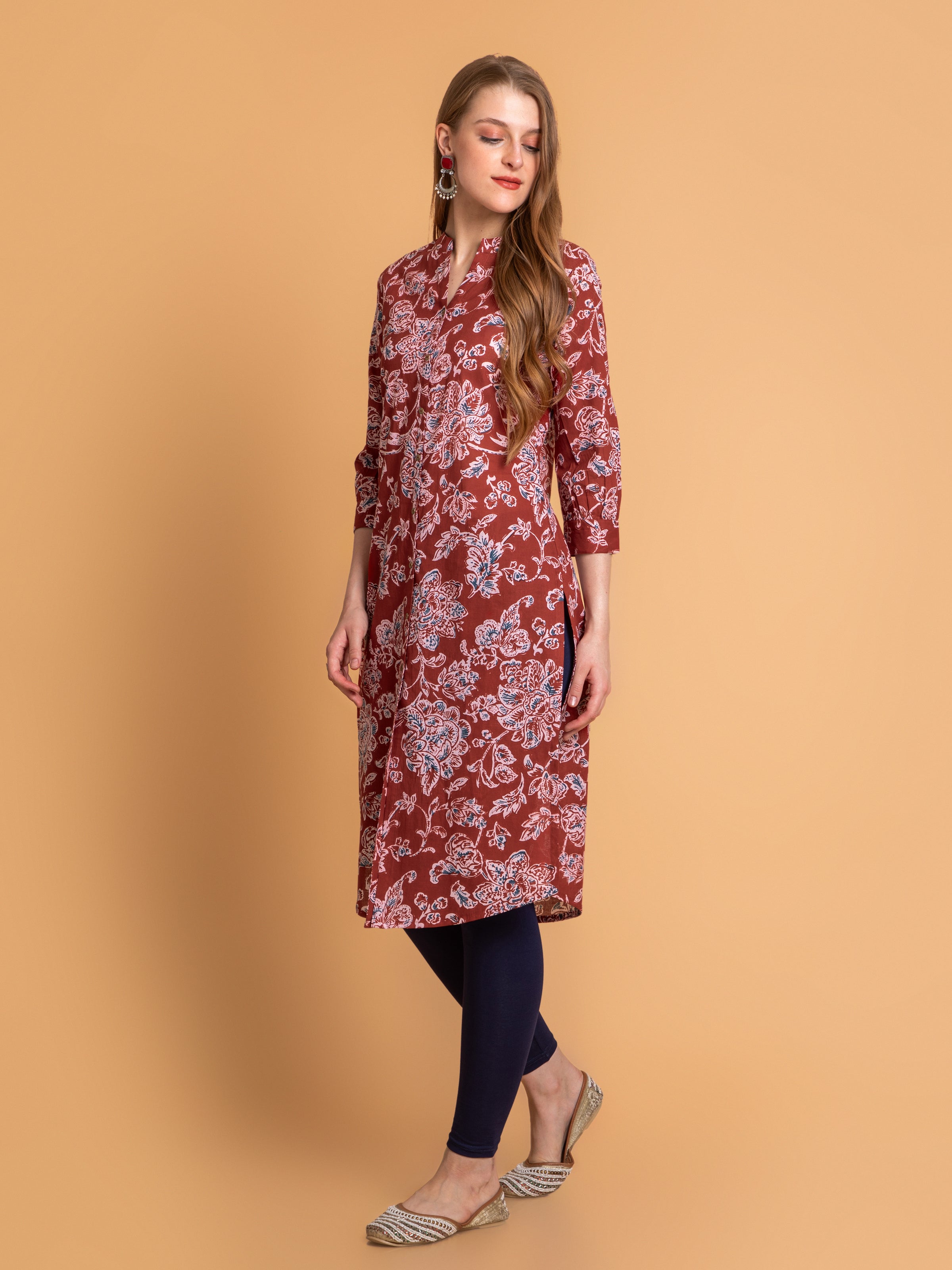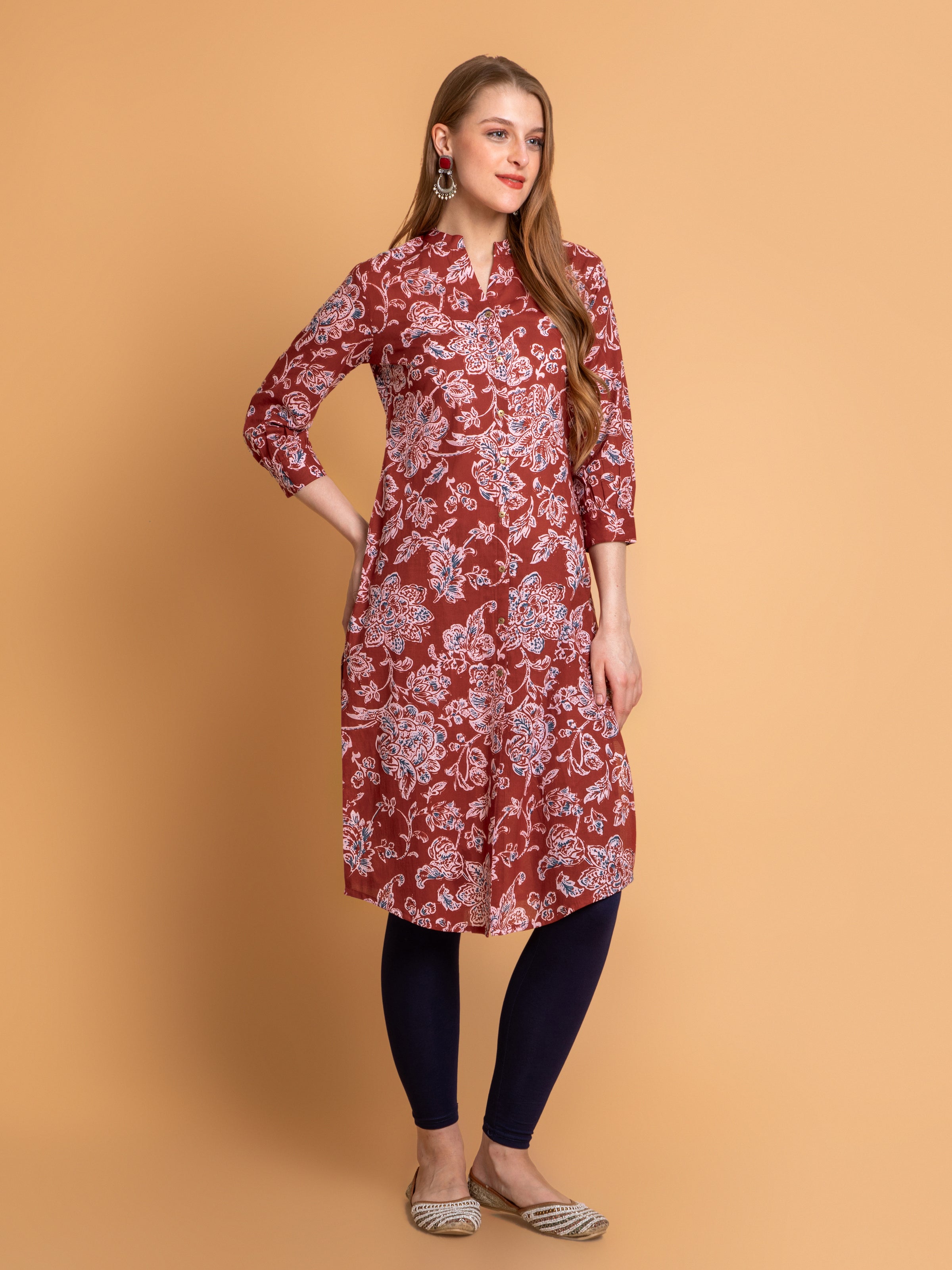 This MUL COTTON MUL-COTTON INDIGO PRINT KURTA is a timeless creation for women who appreciate subtle elegance. Detailed with beautiful fine detailing, it exudes sophistication and charm. Perfect for festive celebrations or refined gatherings, its graceful design offers a flattering and comfortable fit, effortlessly elevating your ethnic wardrobe. Style this elegant piece with your favorite accessories to complete the perfect look.