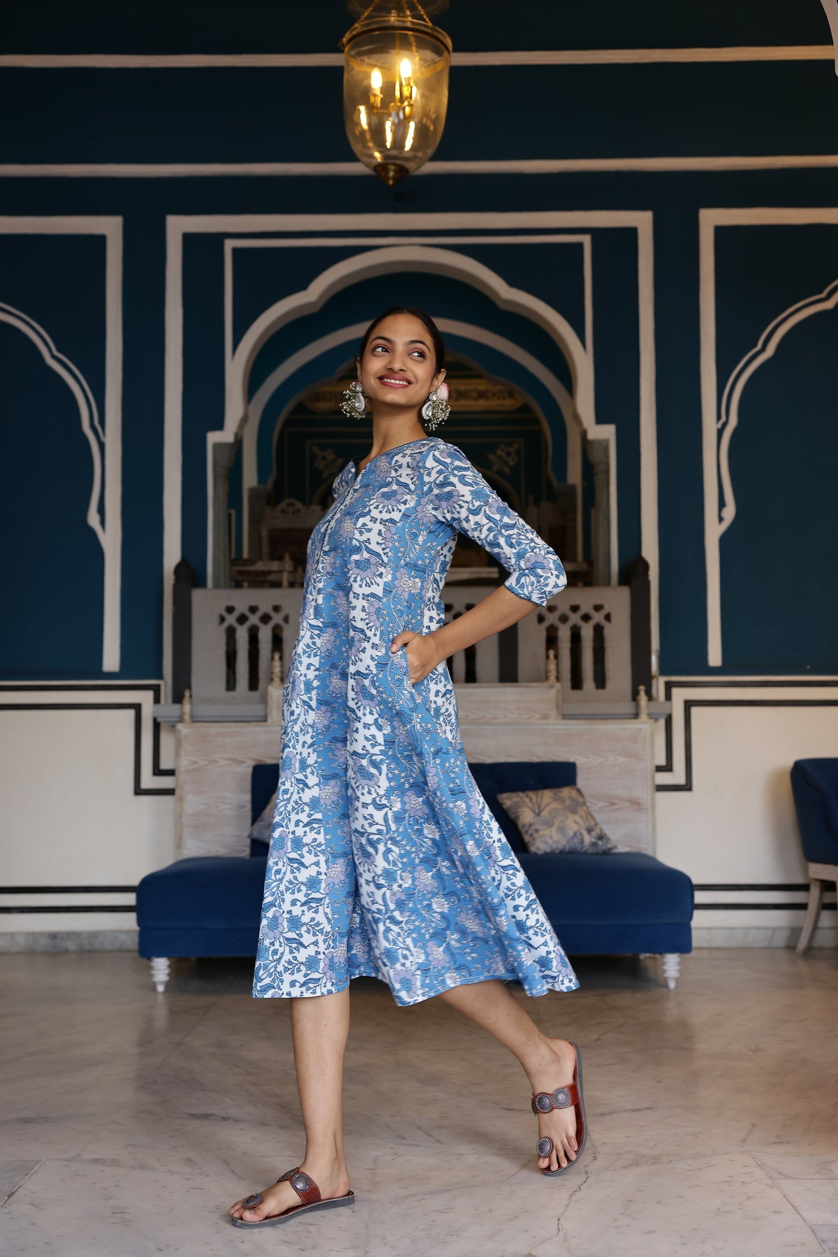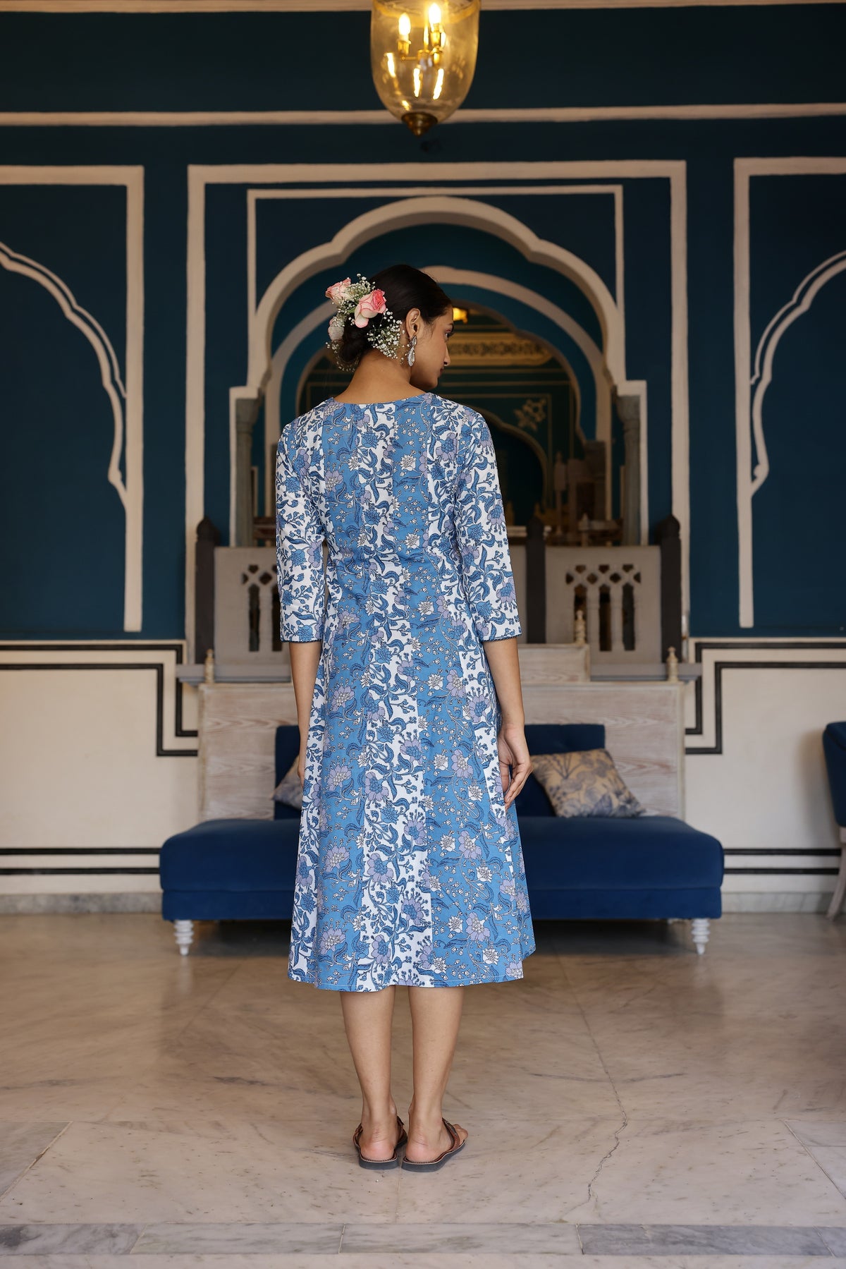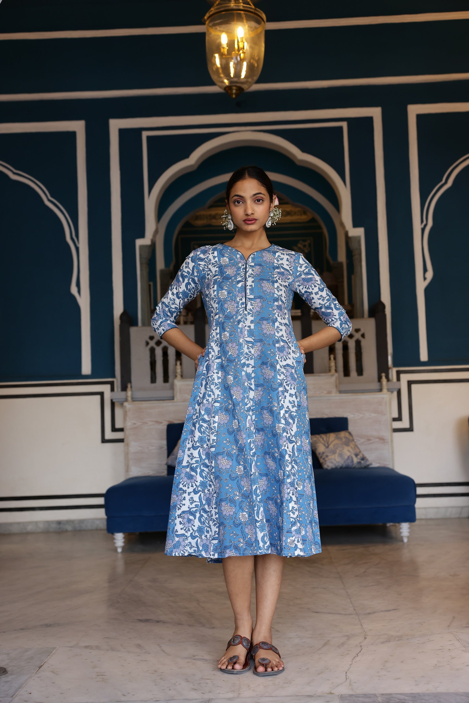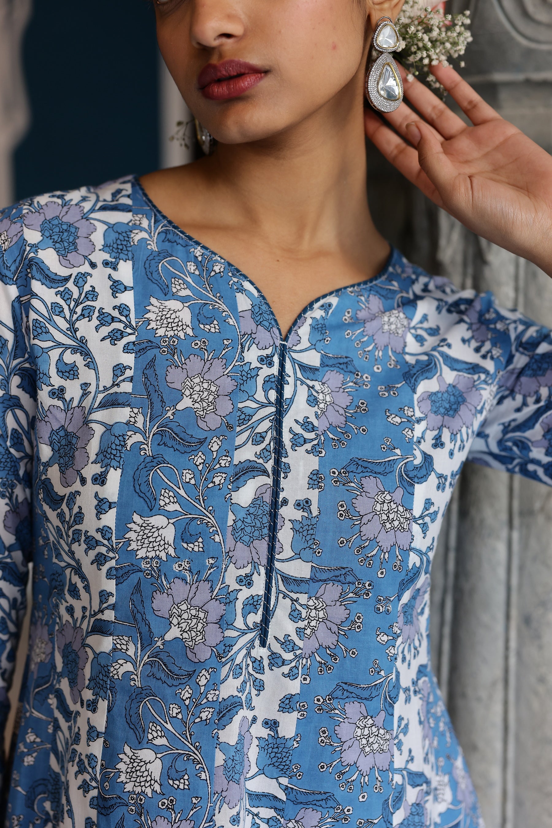 Mul Cotton Printed Kalidar Kurti with Zari Work