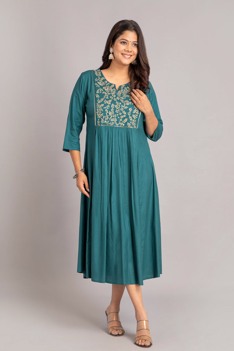 SUTI WOMEN RAYON EMBROIDERED LONG KURTA