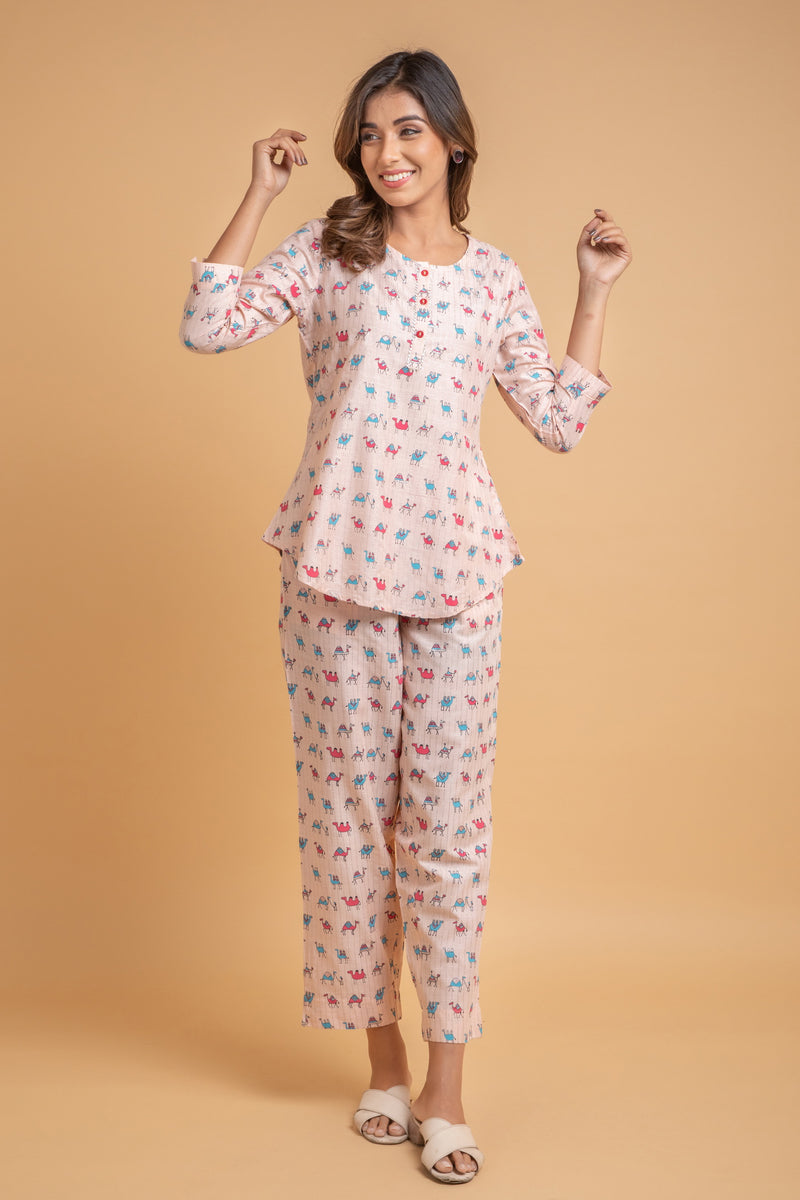 Sleeveless A-line Cotton Kurti with Khadi Print
