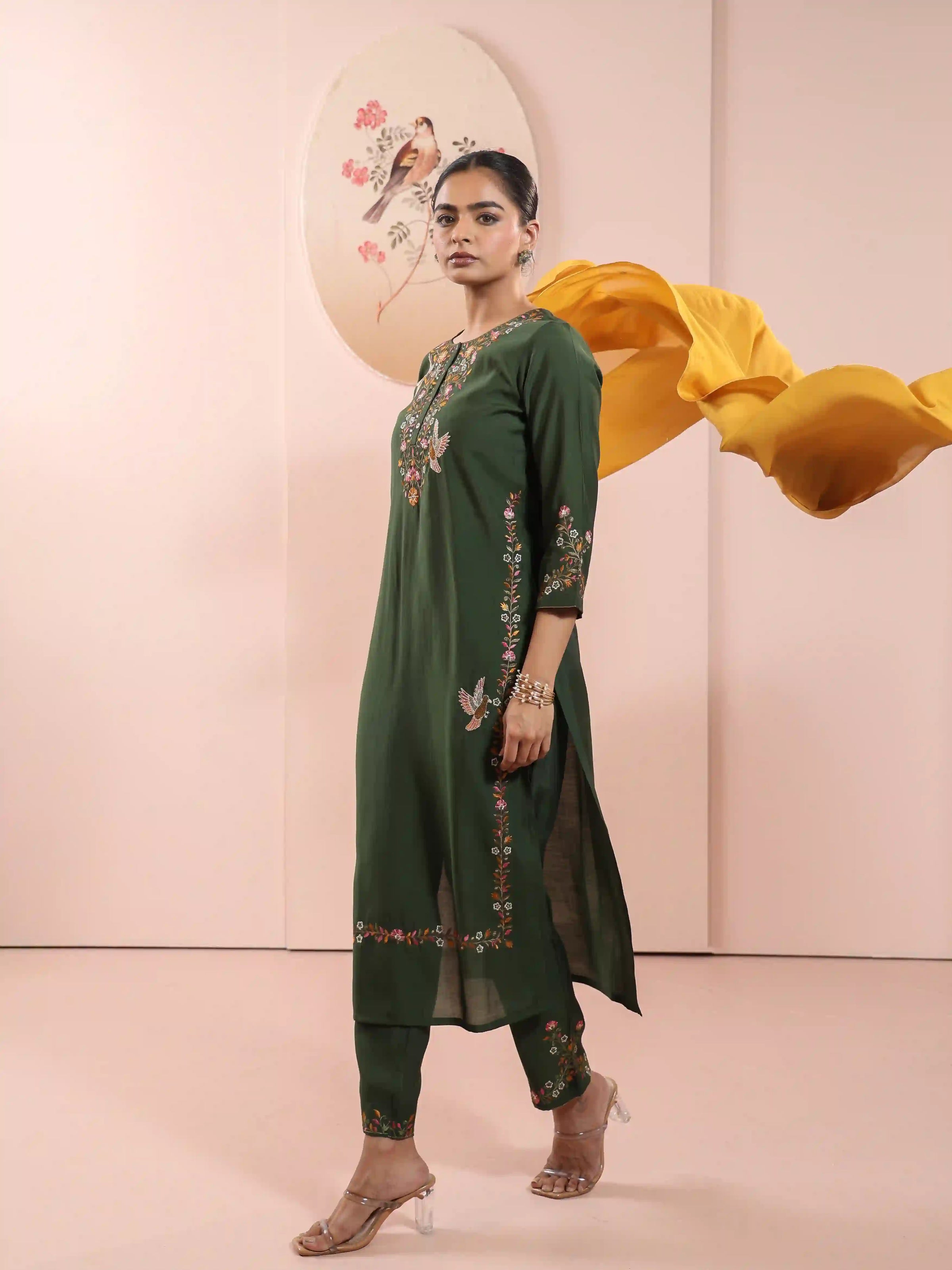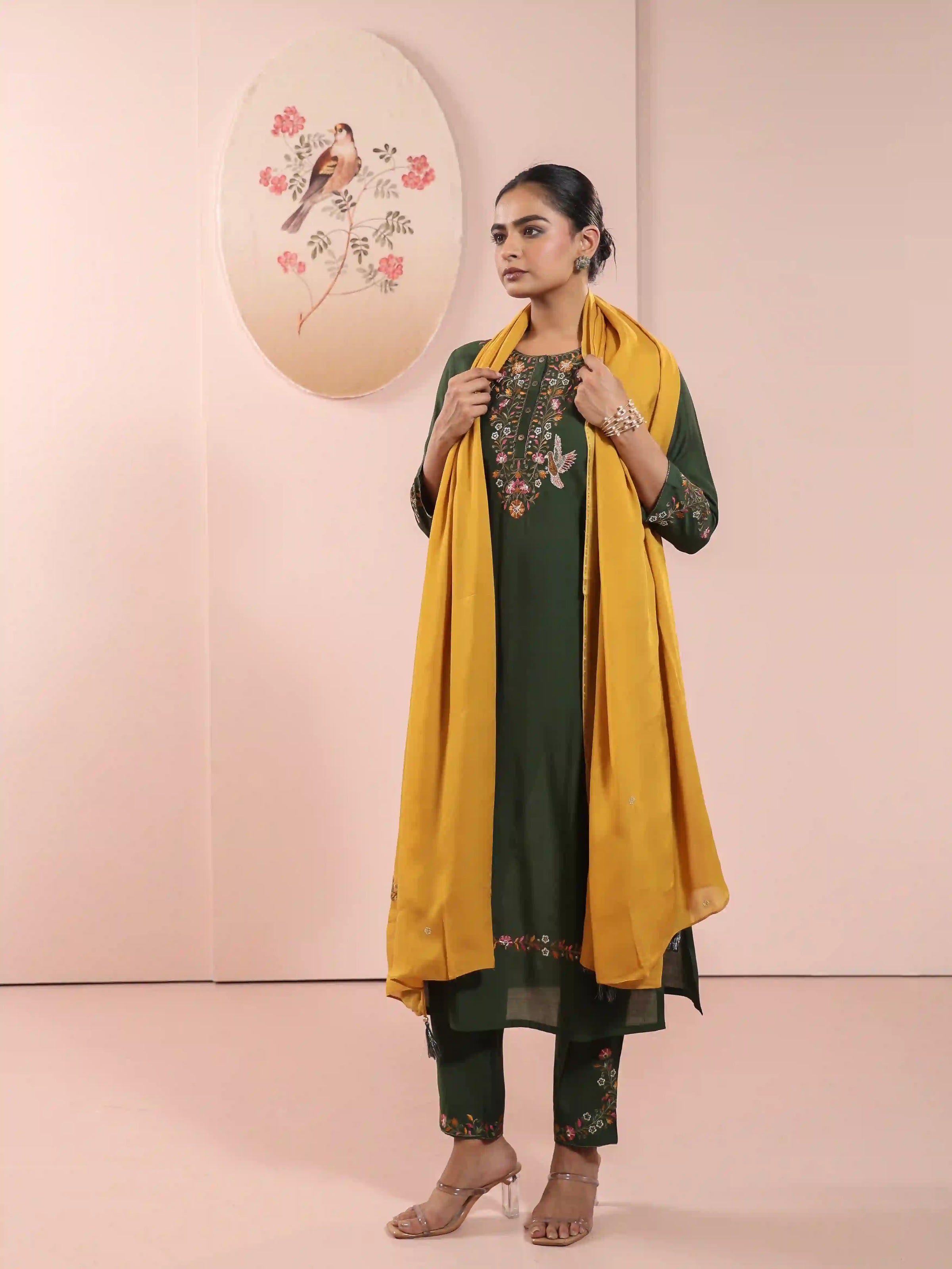 Women Wine Color silk-base-beautiful-embroidery-3pc-kurta-set-with-sequence-details