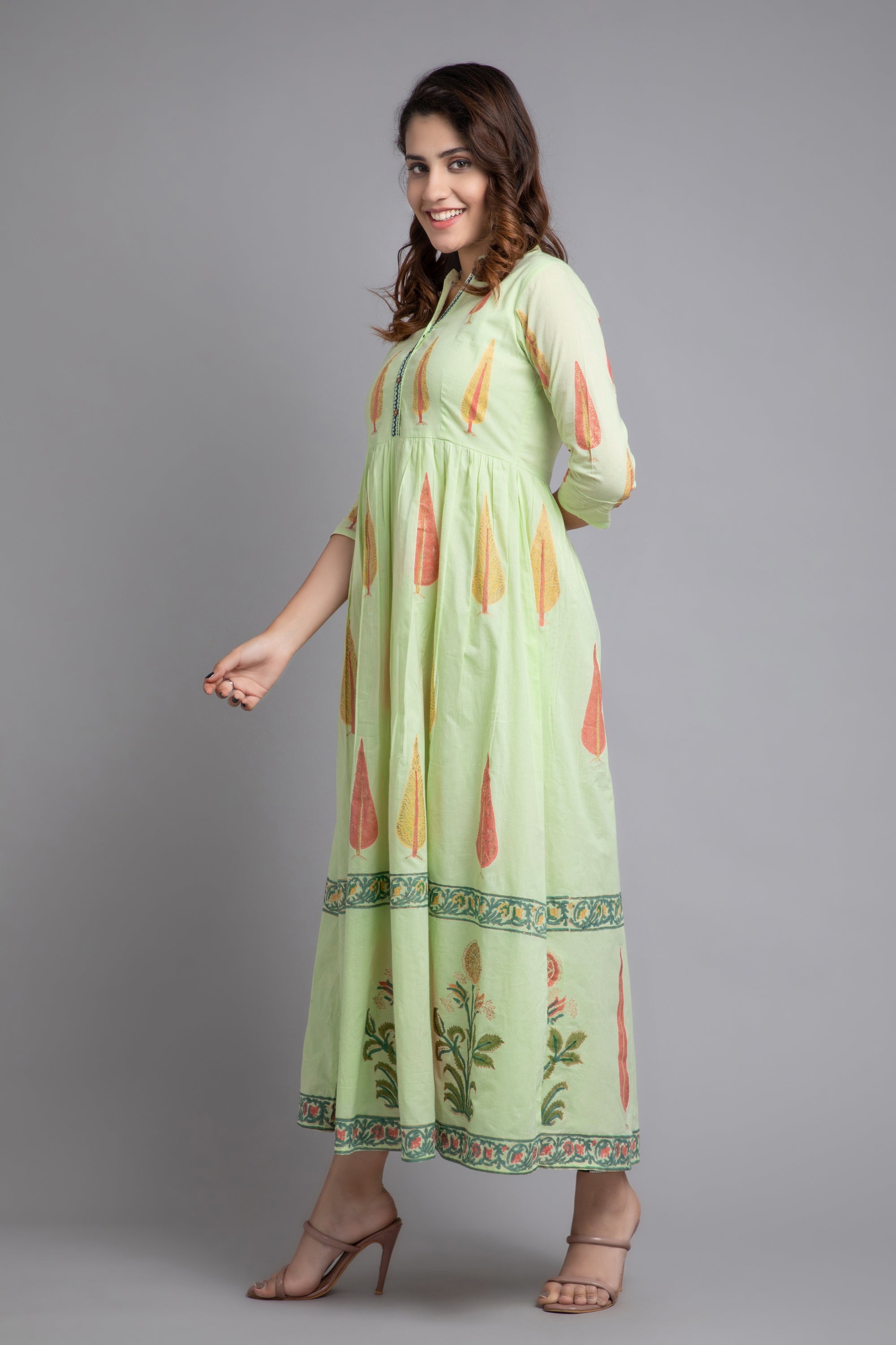 Shadow Lime Hand Block Printed Long Dress