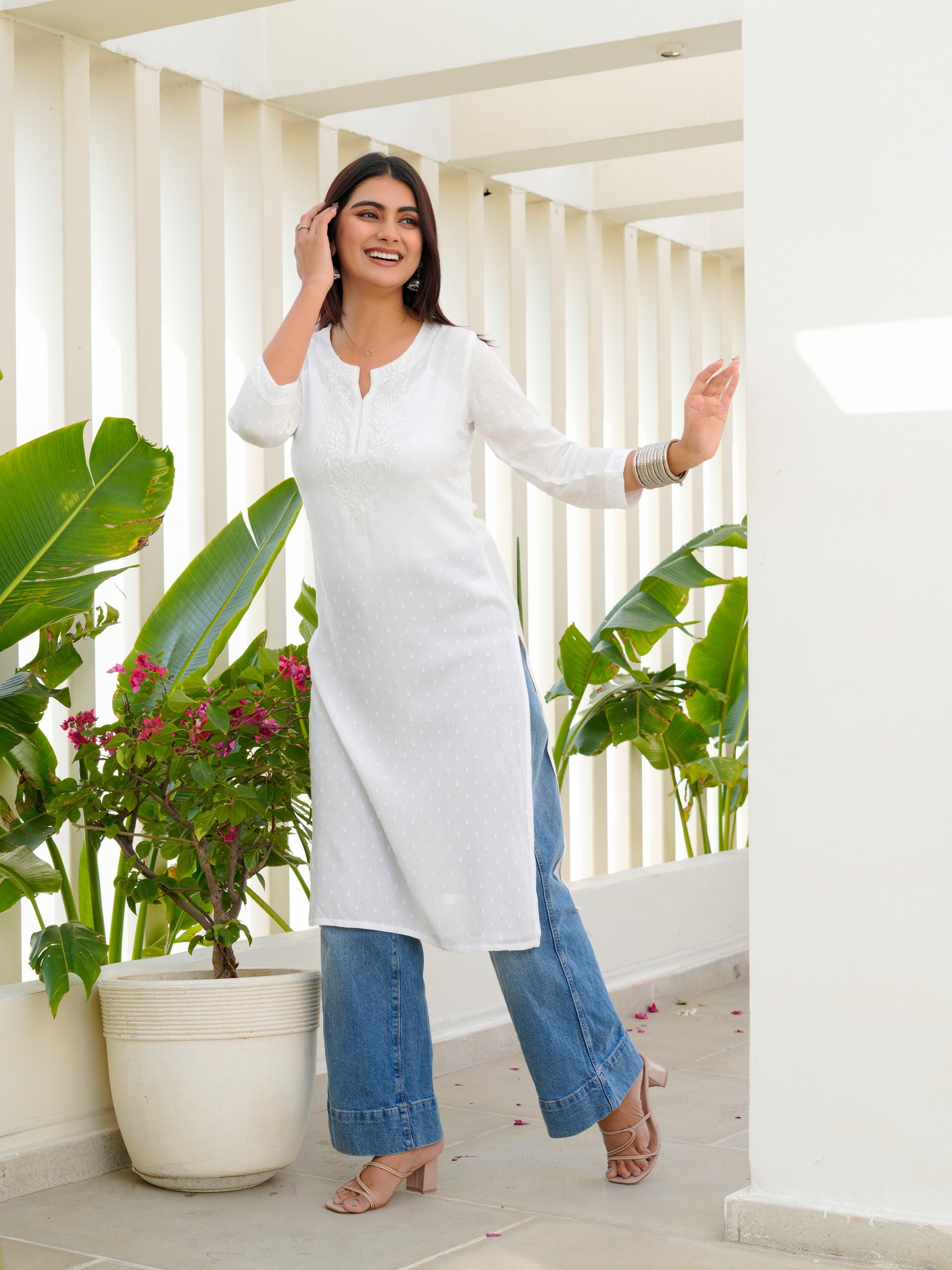 DOBBY CHIKANKARI EMBROIDERED KURTI
