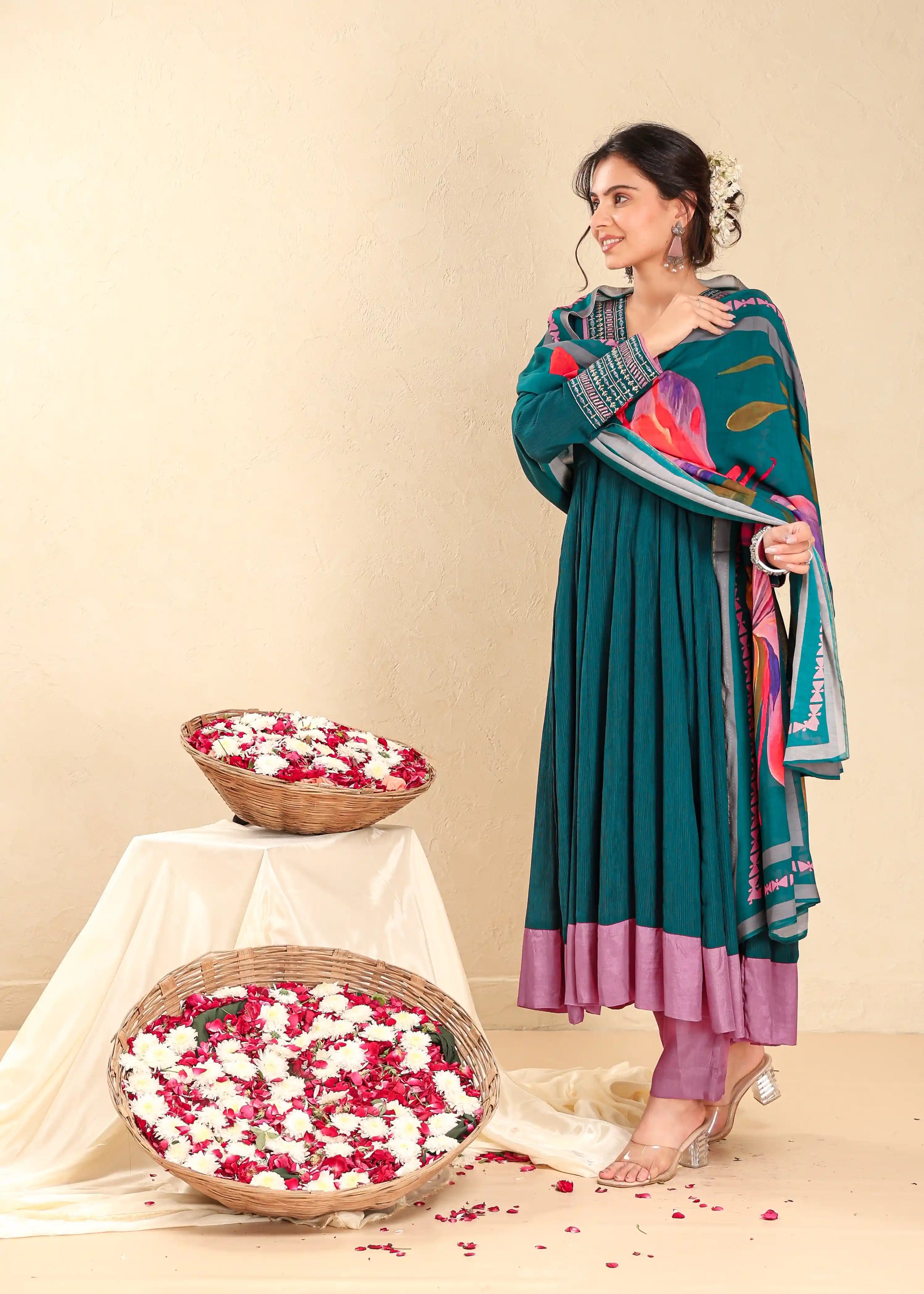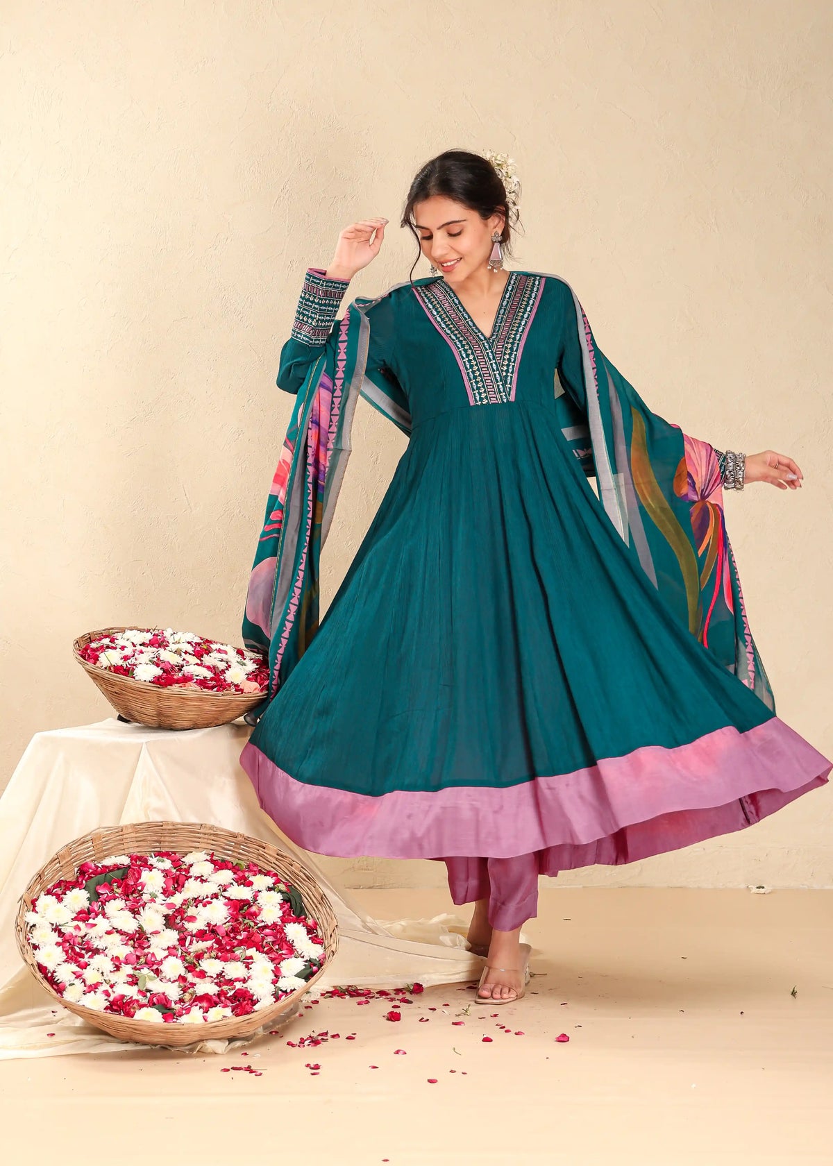 3 PC EEMBROIDERED KALIDAR KURTA SET