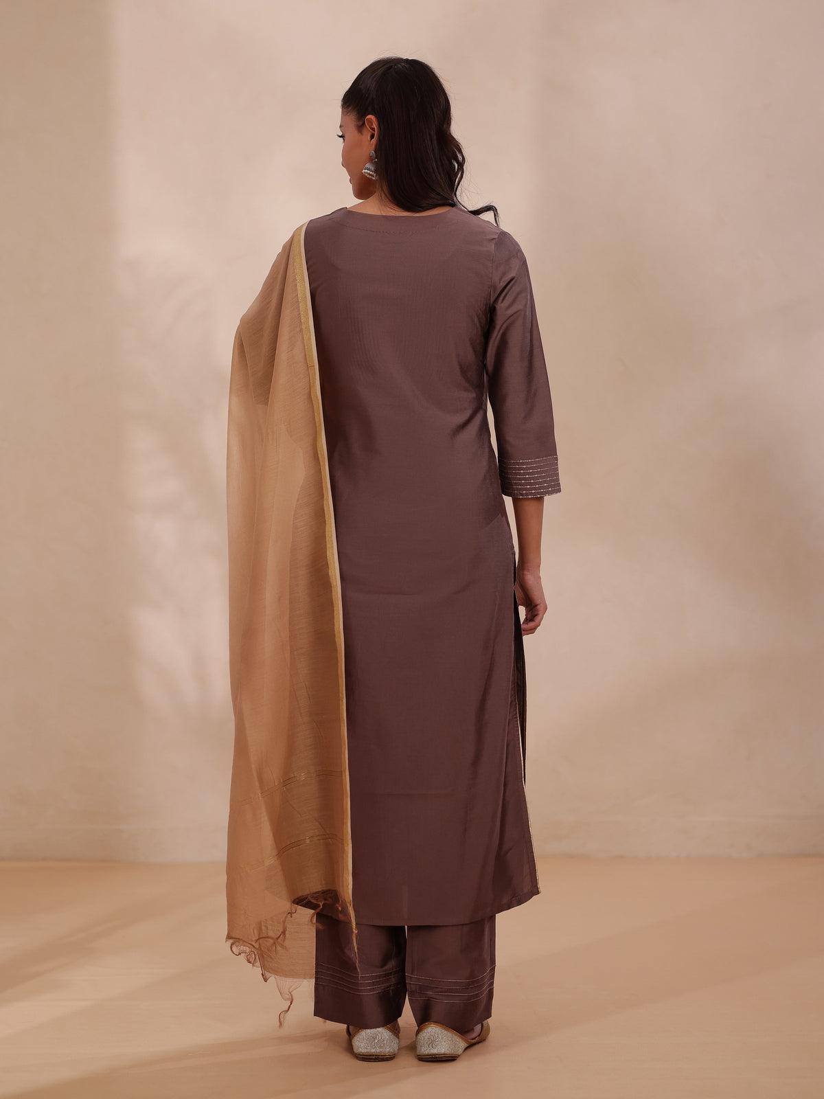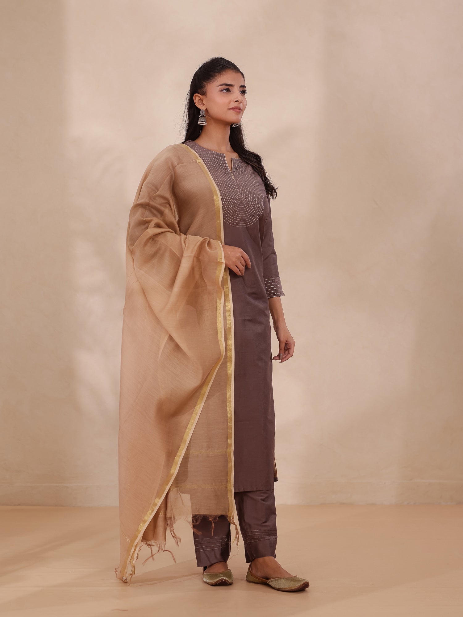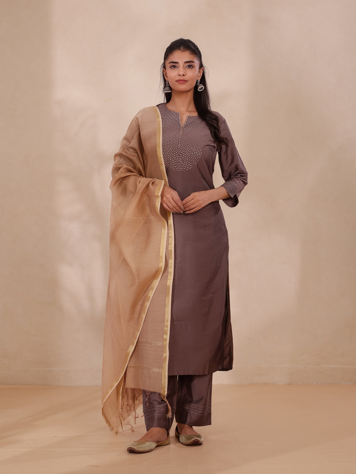 3PC SEQUENCE EMBROIDERY PARTY WEAR KURTA PAIRED WITH CHANDERI DUPATTA SET