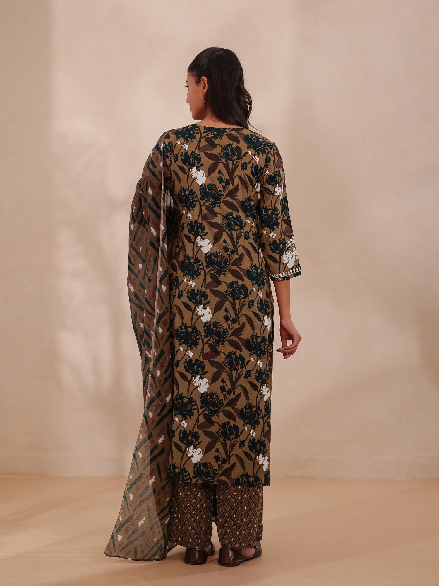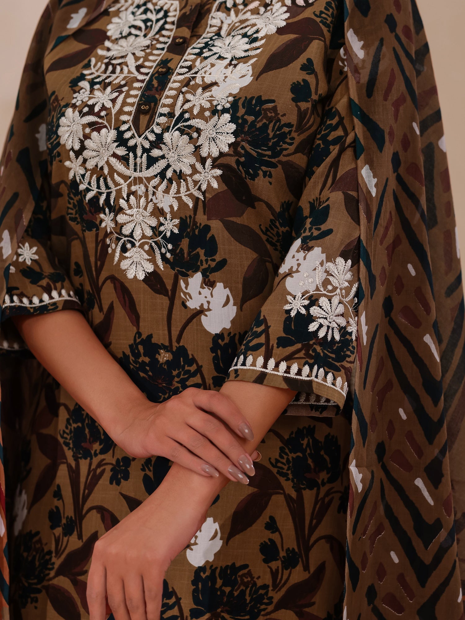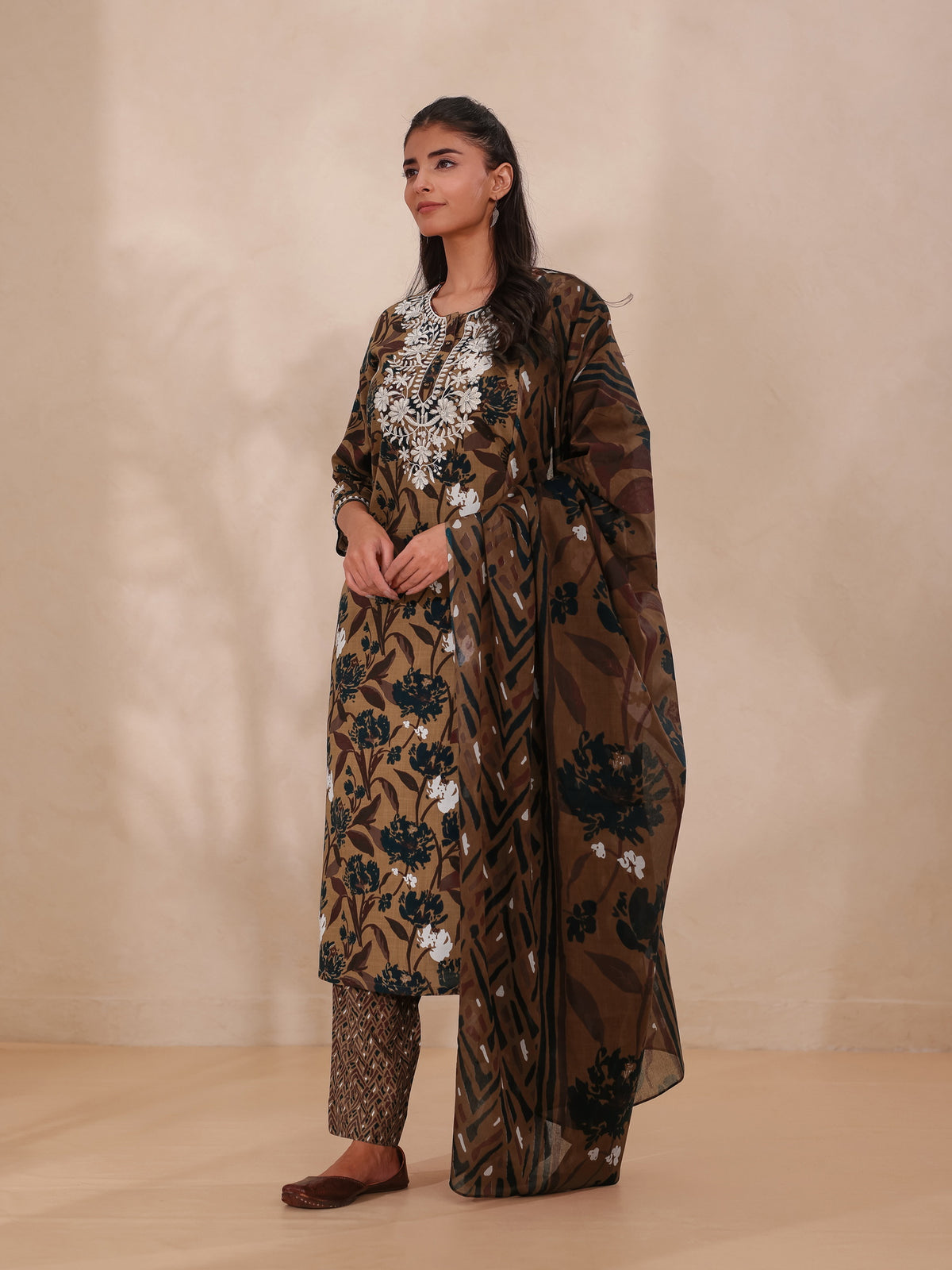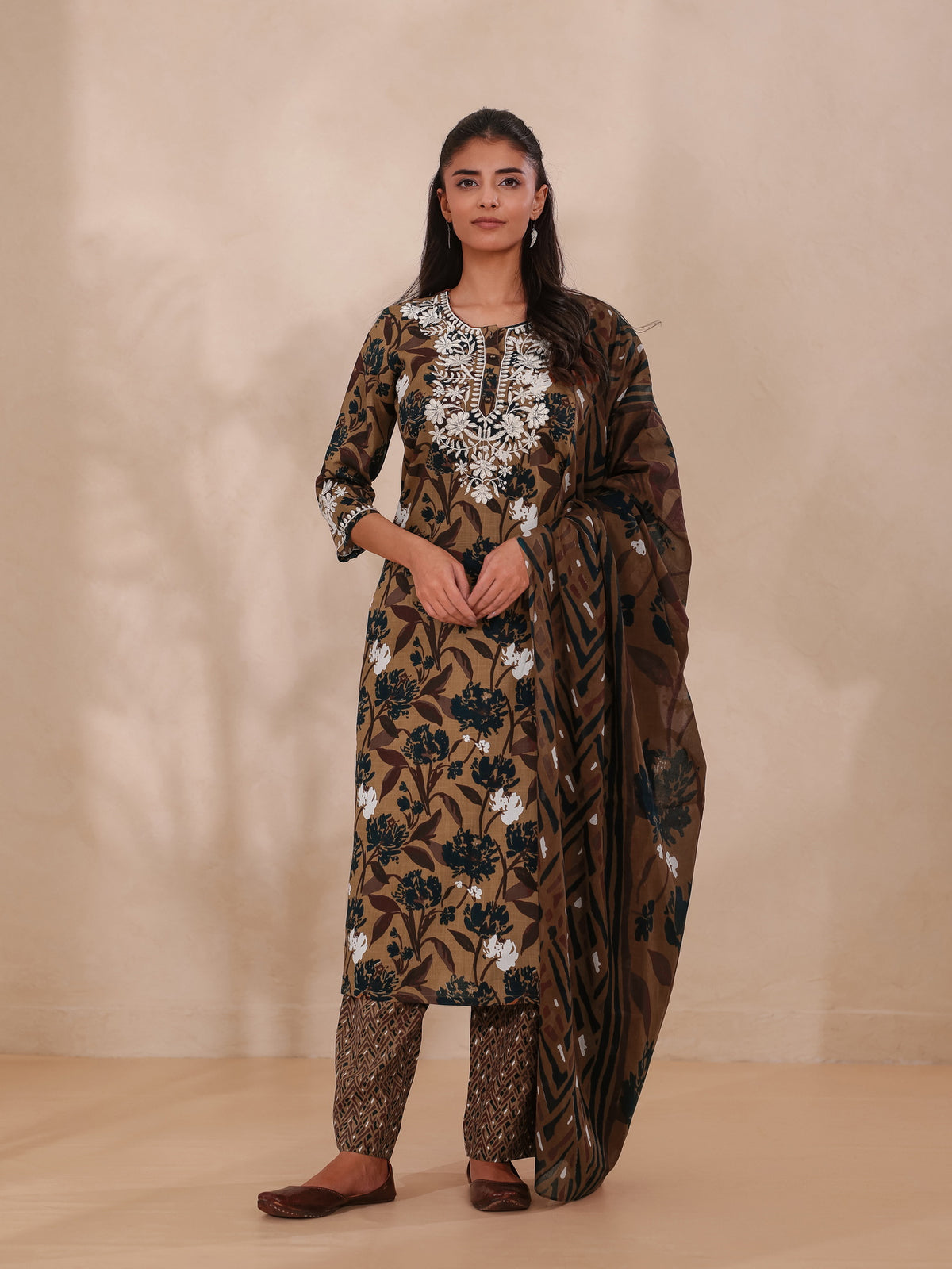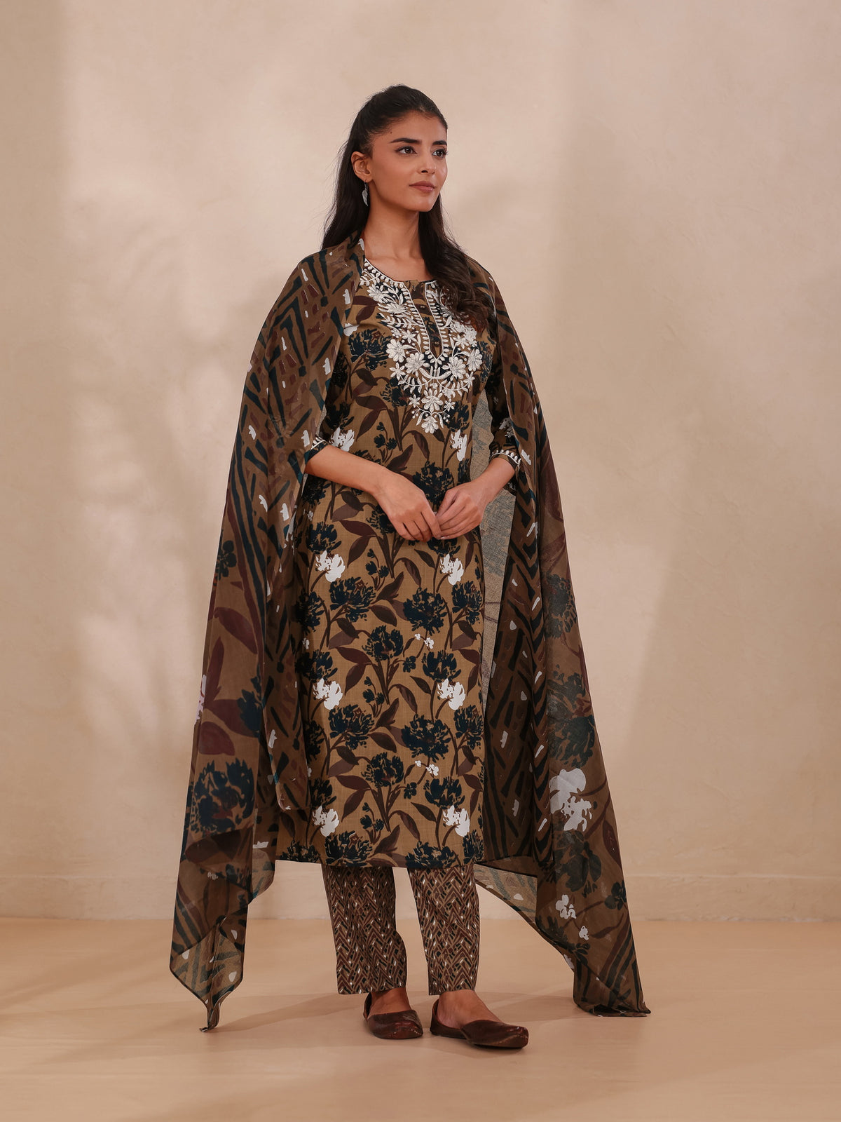 CHIKANKARI EMBROIDERY 3PC FLORAL PRINTED SET