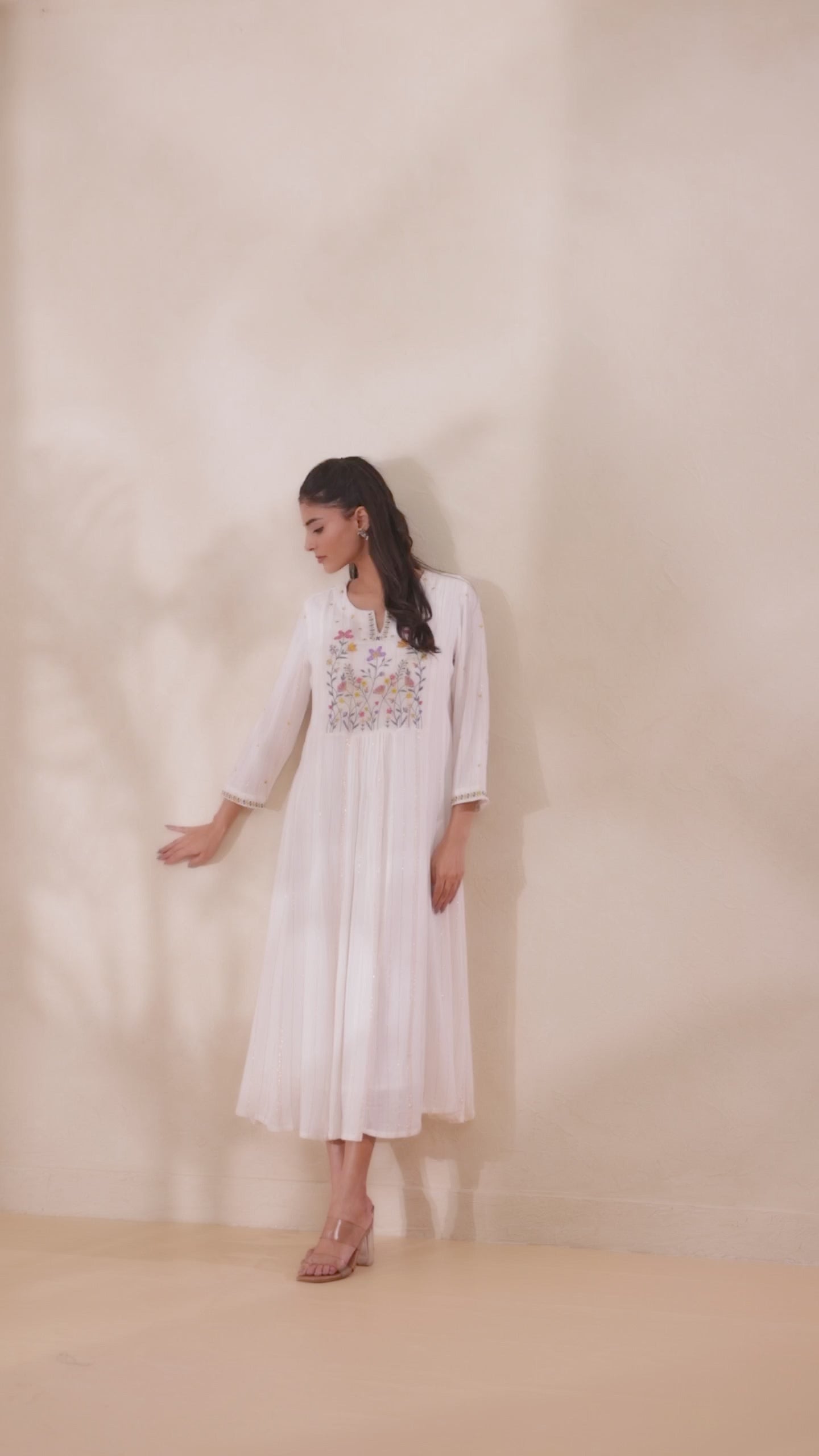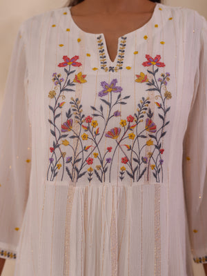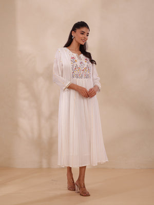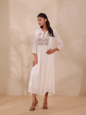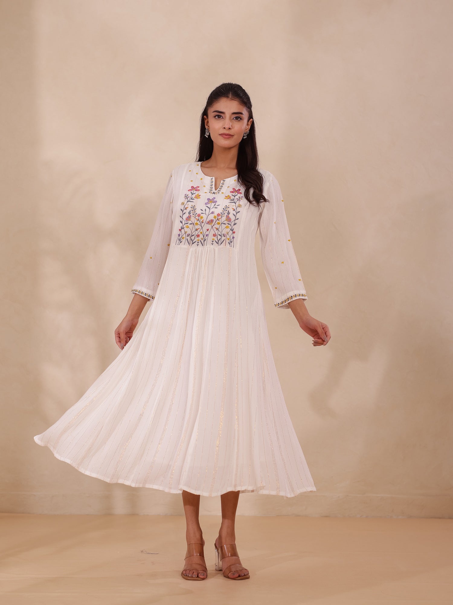 LUREX CREPE EMBROIDERED LONG DRESS