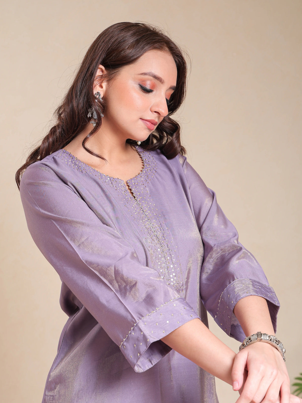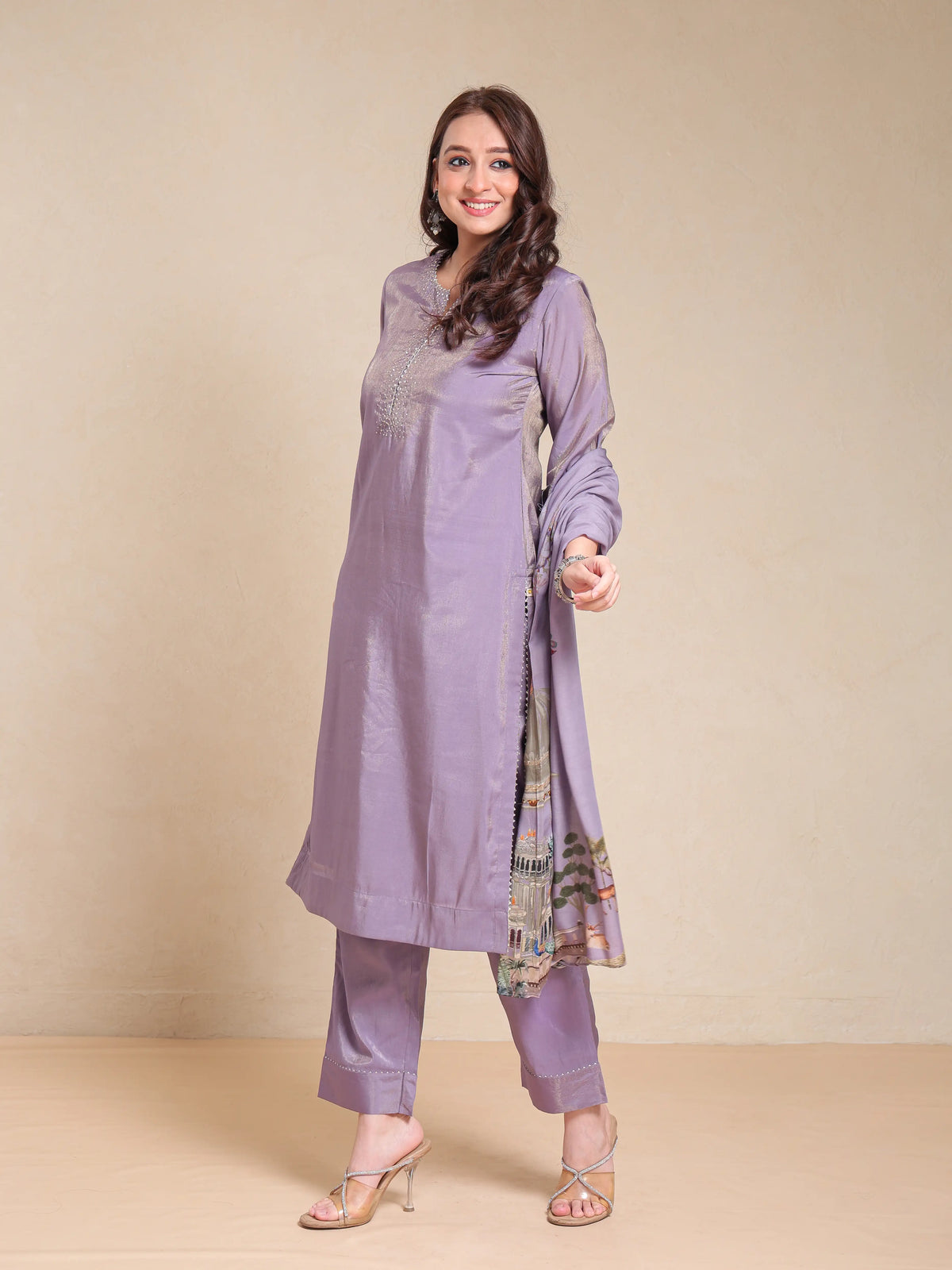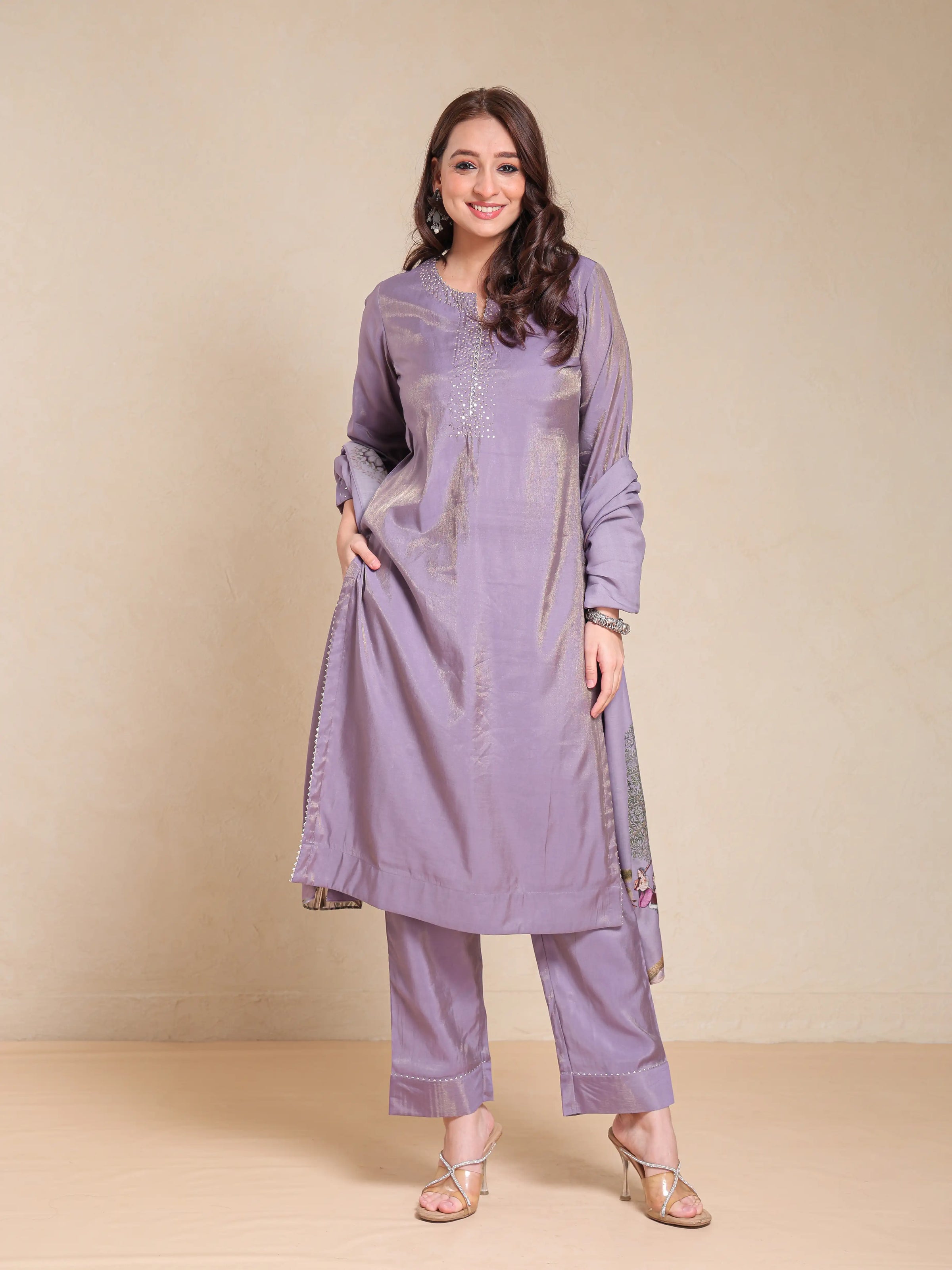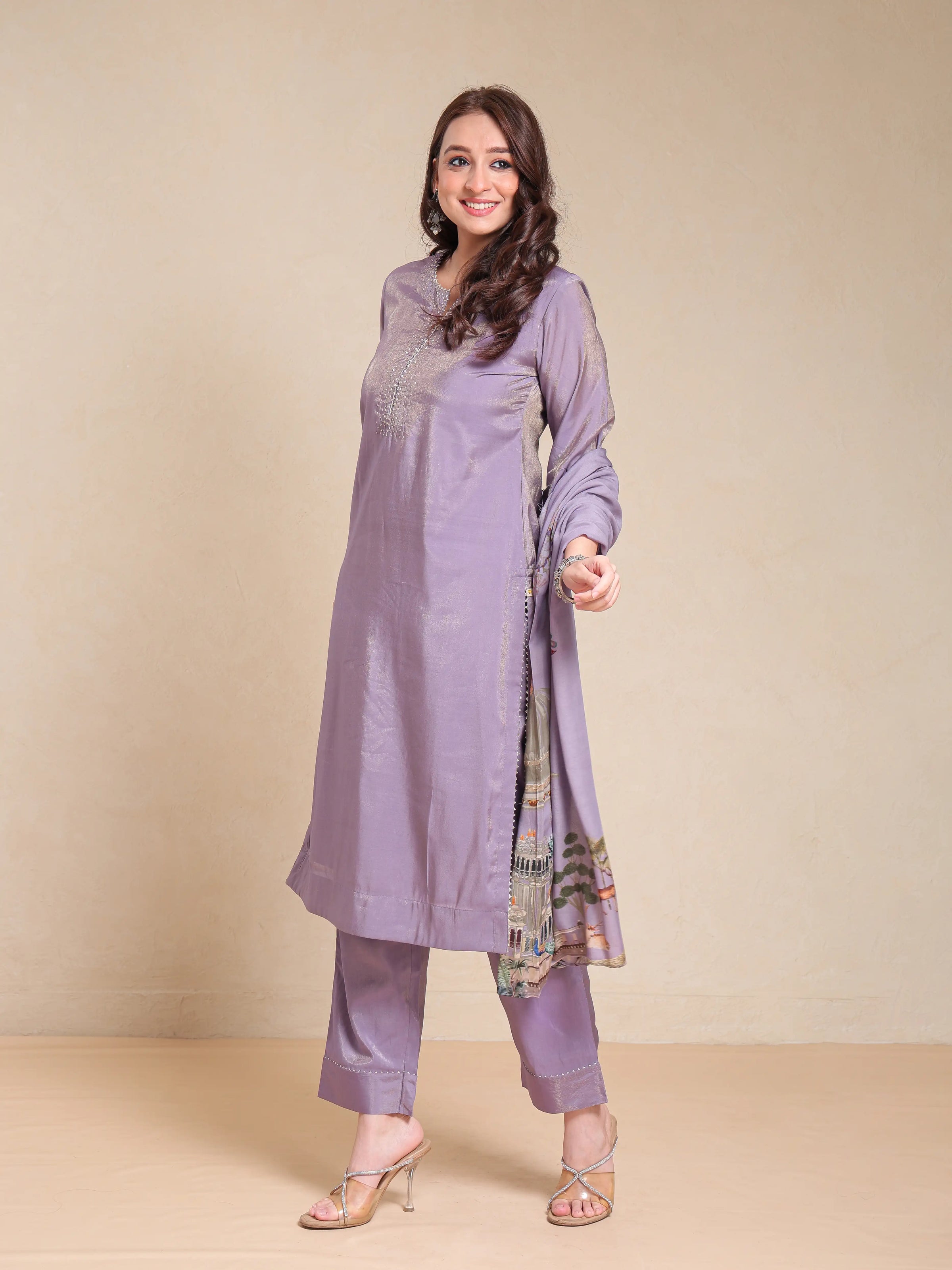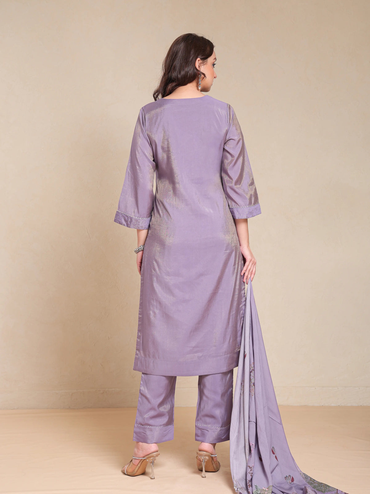 SHIMMER SILK 3PC KURTA SET WITH SEQUENCE WORK PAIRED WITH DIGITAL FLORAL PRINTED DUPATTA