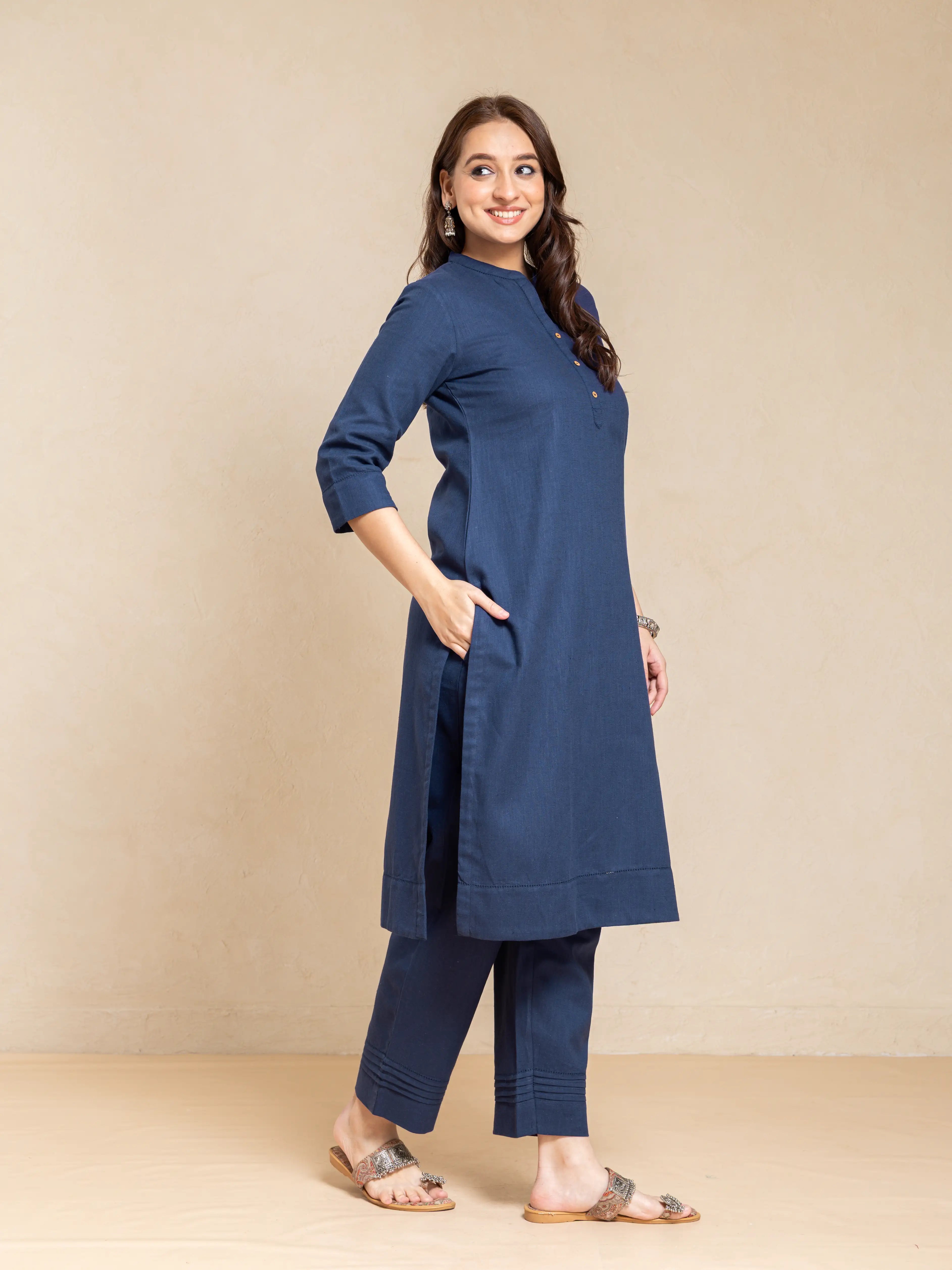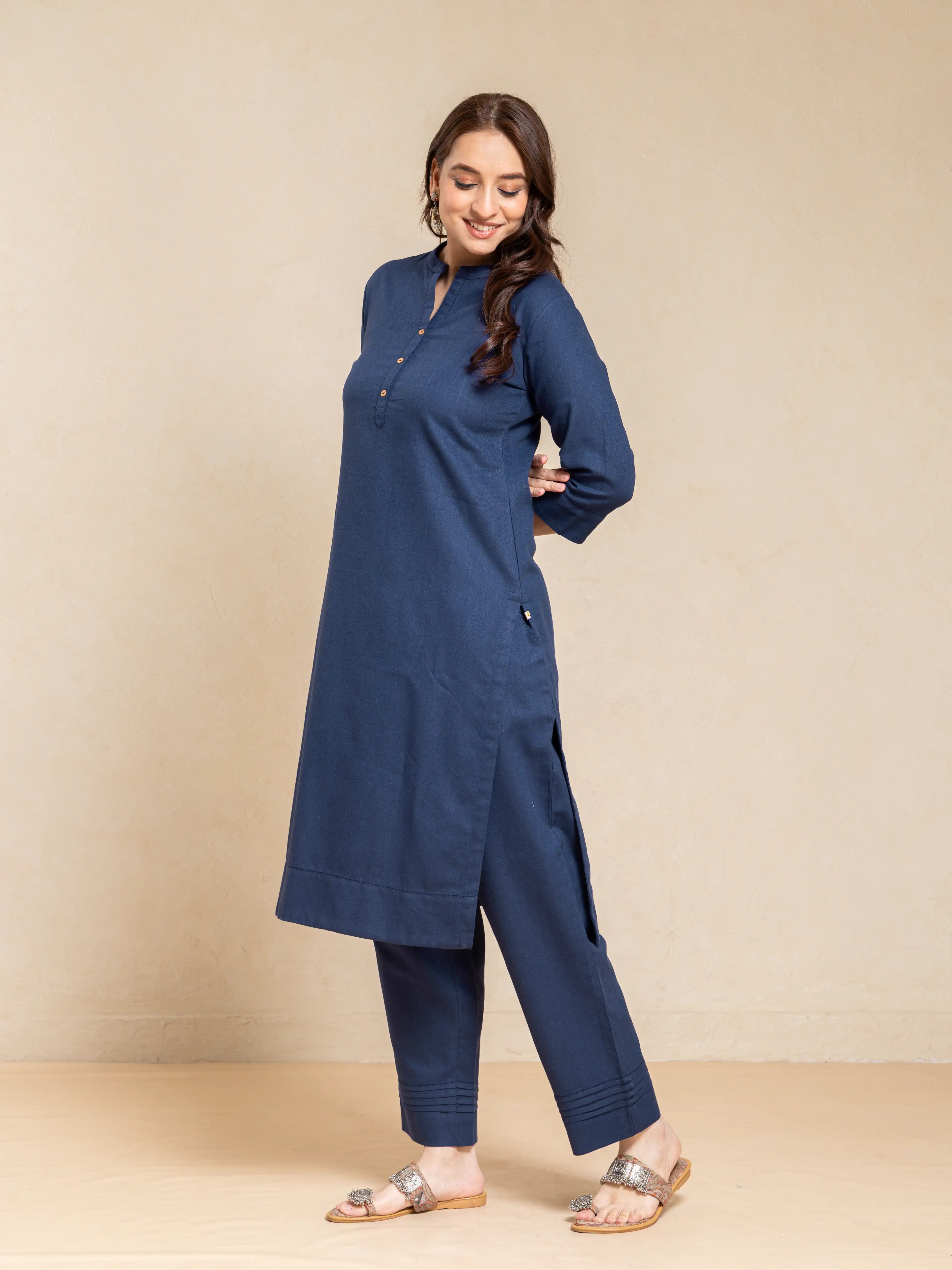 LINEN 2PC KURTA SET DETAILED WITH FAGGOTING