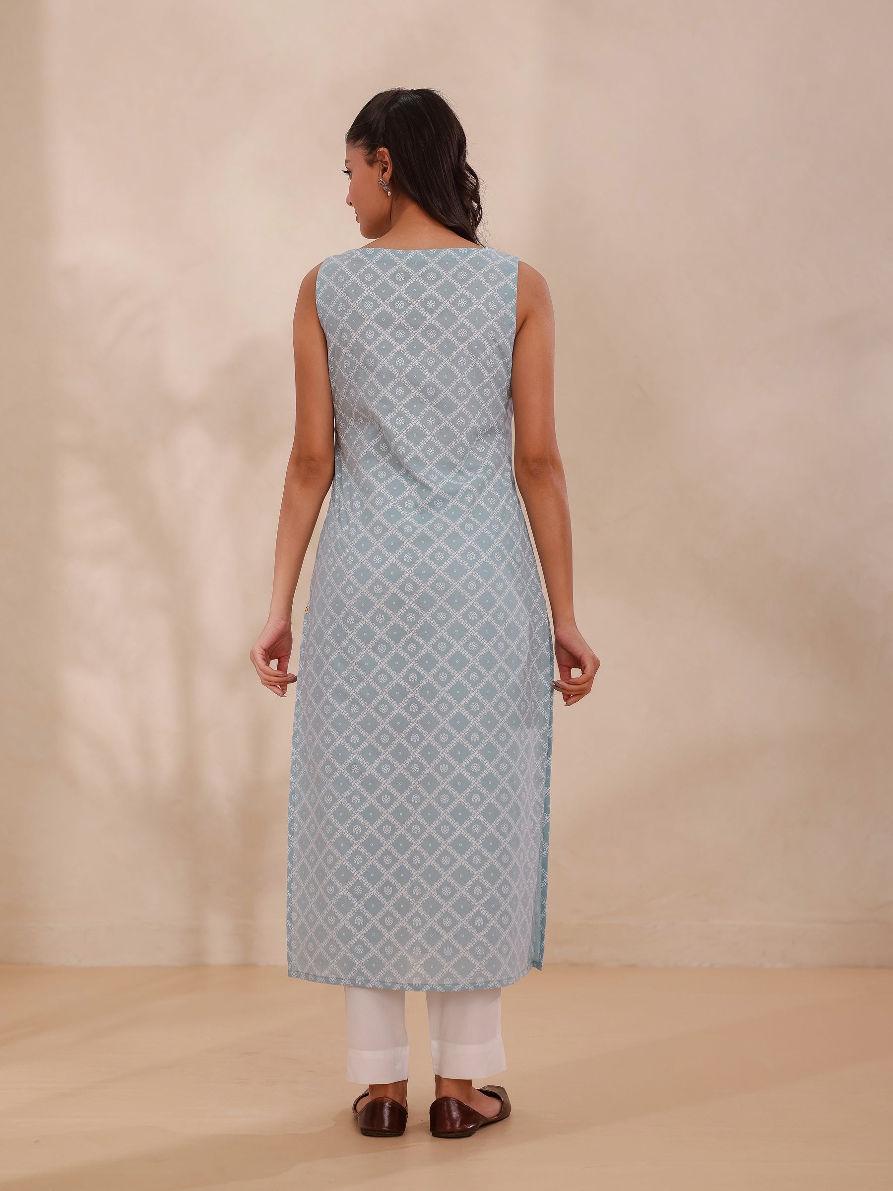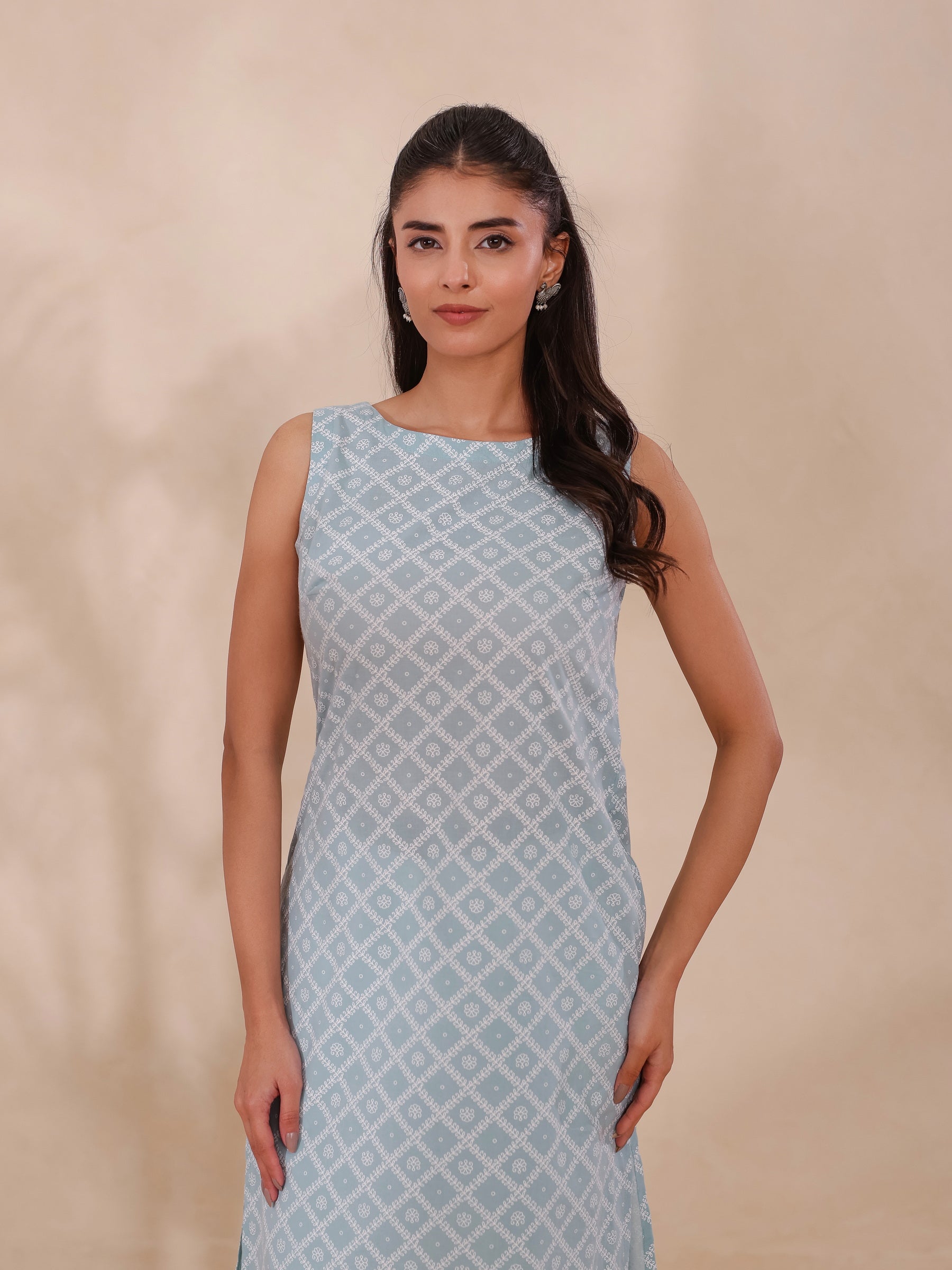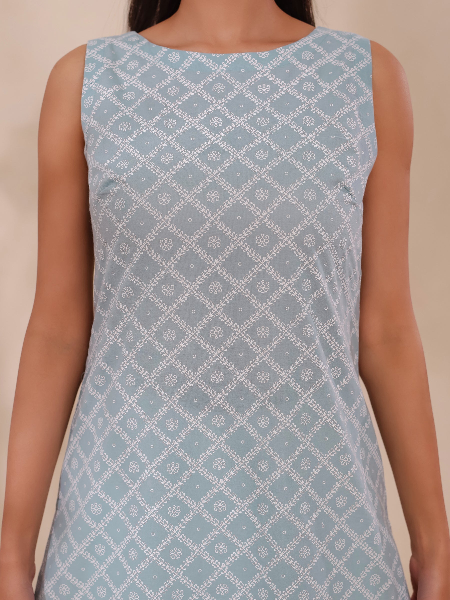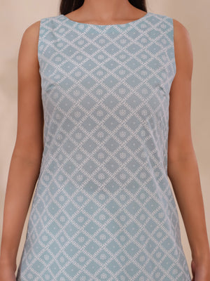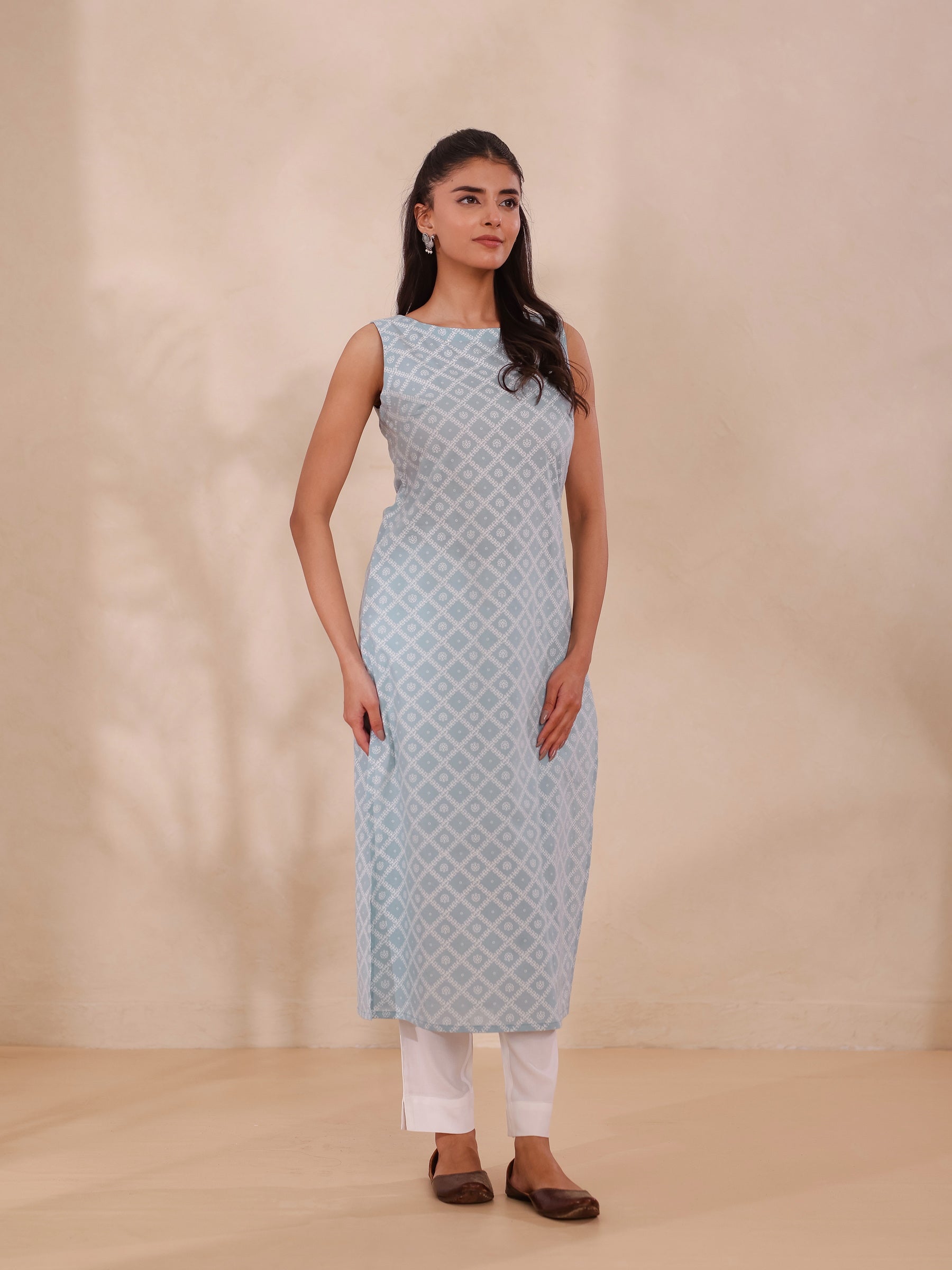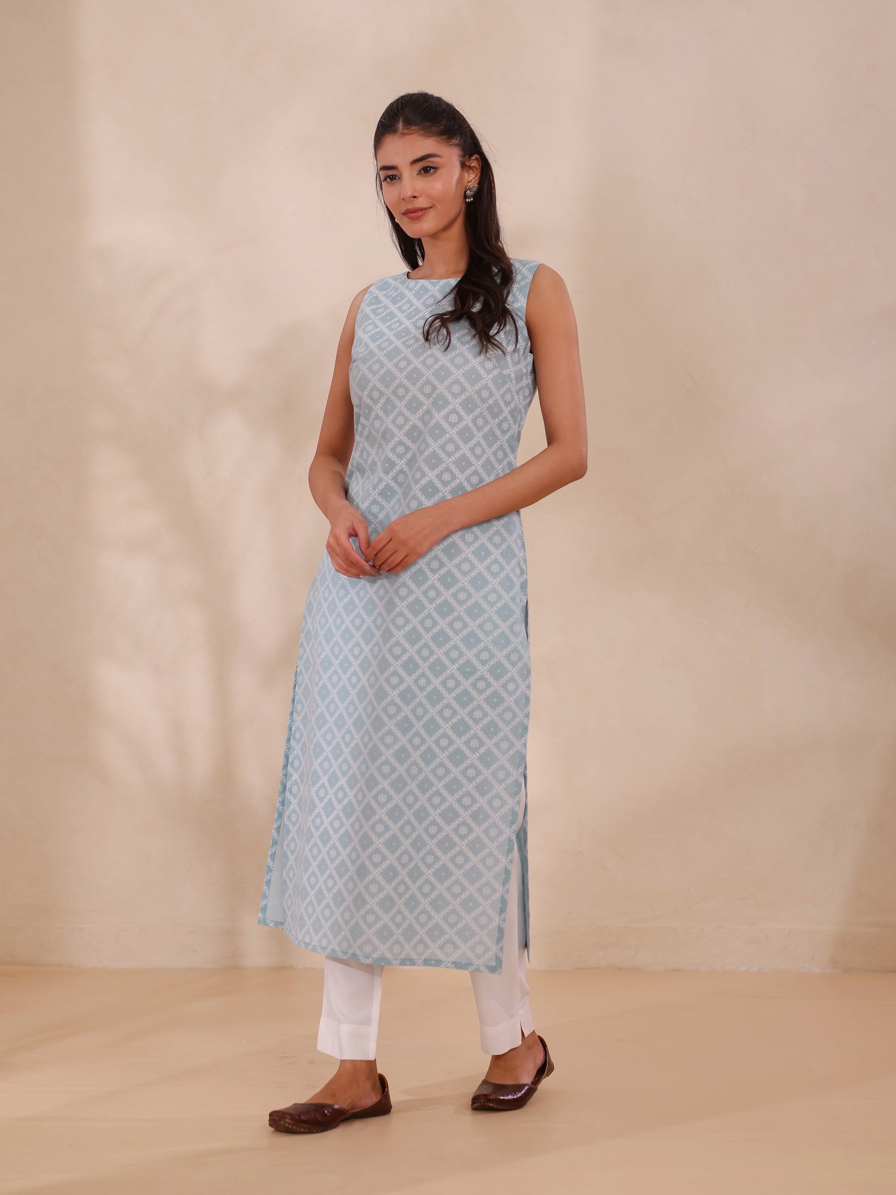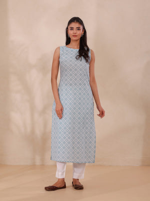 MUL COTTON KHADI PRINTED SLEEVELESS KURTI