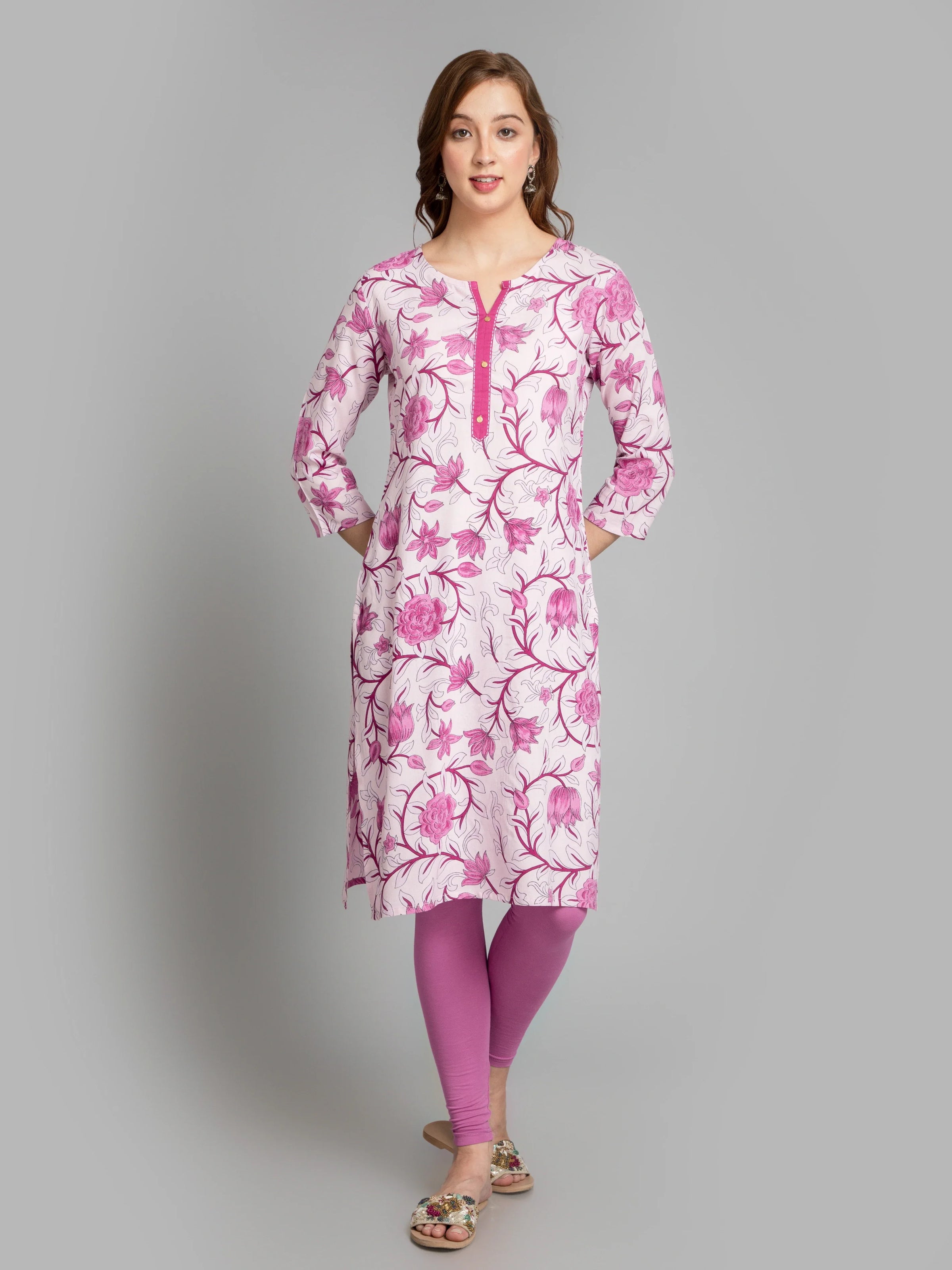 Women Purple Pink FLORAL PRINTED LONG KURTA.