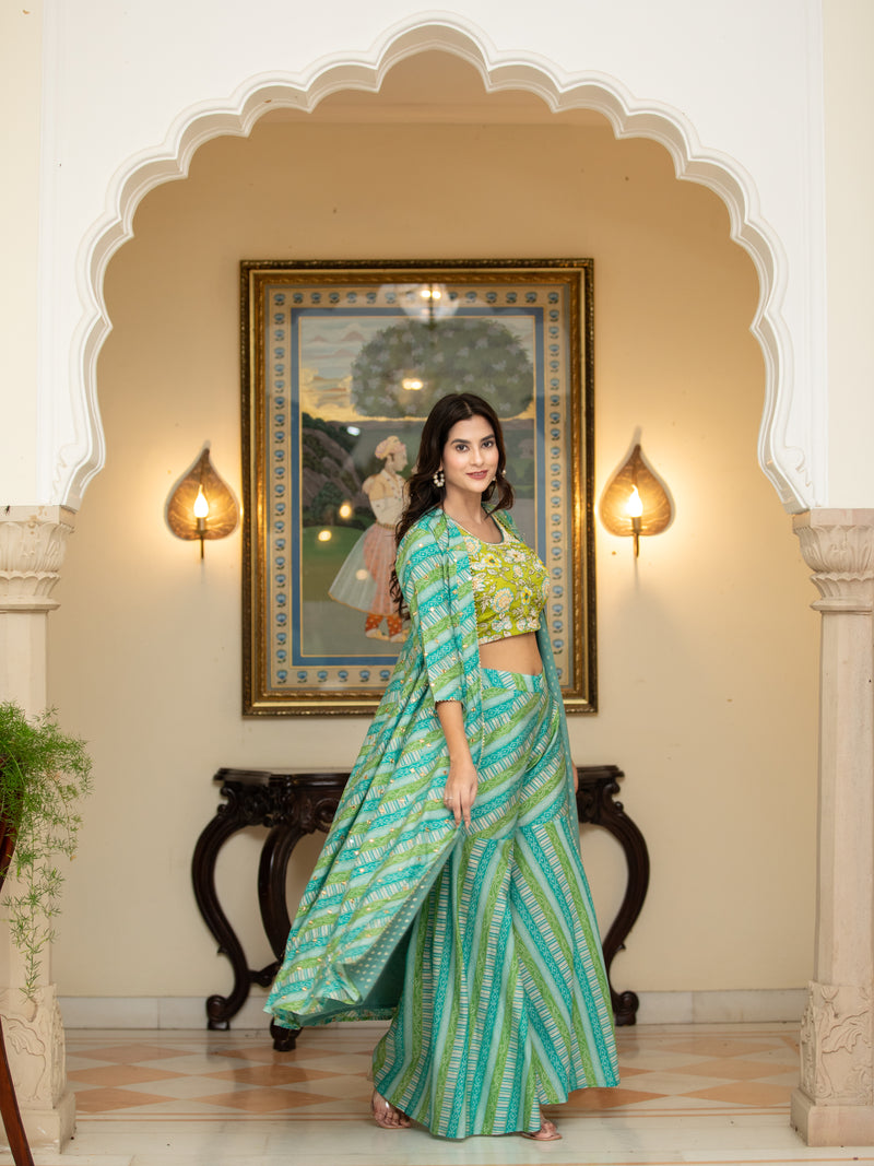 Women Turquoise BANDEJH PRINT SHARARA WITH CAPE 3 PCS SET