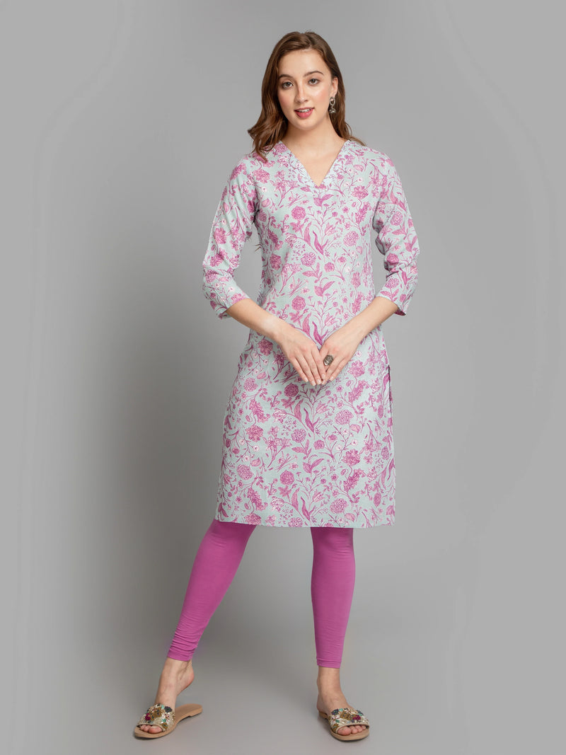 Women Purple Pink FLORAL PRINTED LONG KURTA.