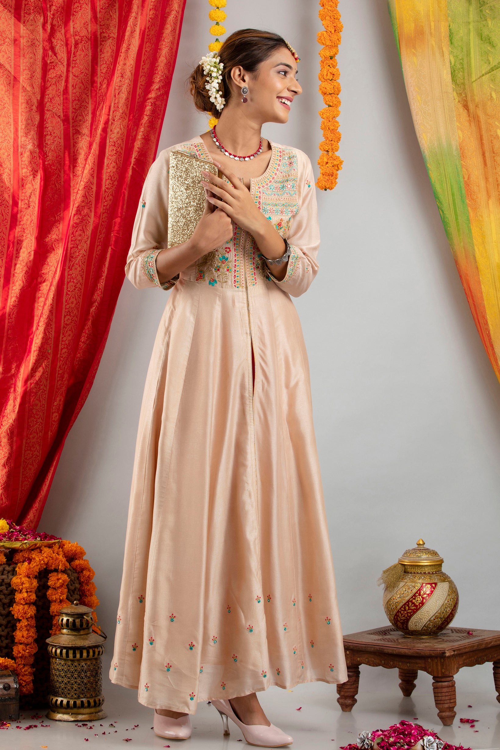 FESTIVE WEAR EMBROIDERED KALIDAR KURTA SET