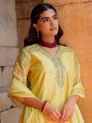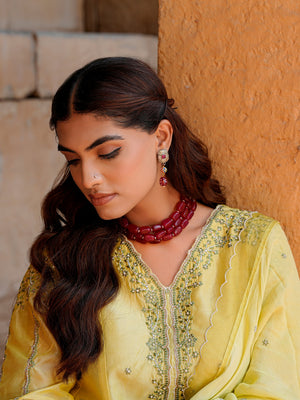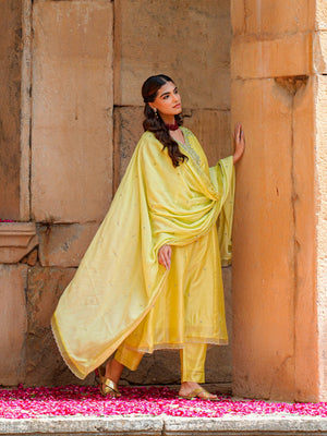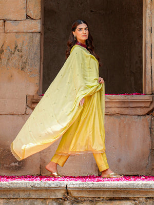 Lime Sherbet Muslin Embroidered 3 Pc Kurta Set Women Festive